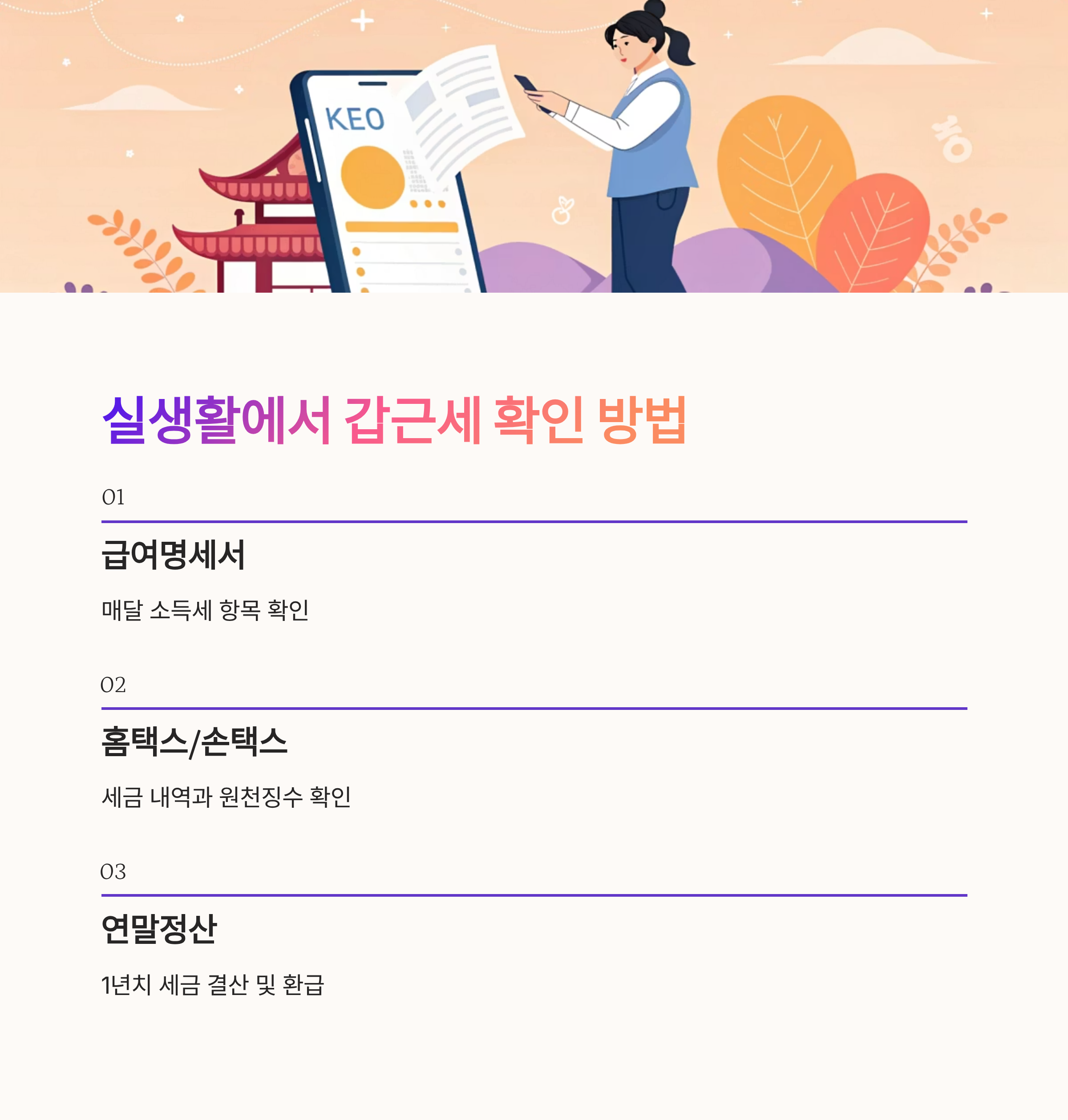 이 표를 보면 갑근세가 단순히 세금을 걷는 제도를 넘어, 시대 변화에 따라 발전해온 제도라는 점이 잘 드러나요. 덕분에 지금은 누구나 손쉽게 이해하고 활용할 수 있는 구조가 되었답니다. 👍