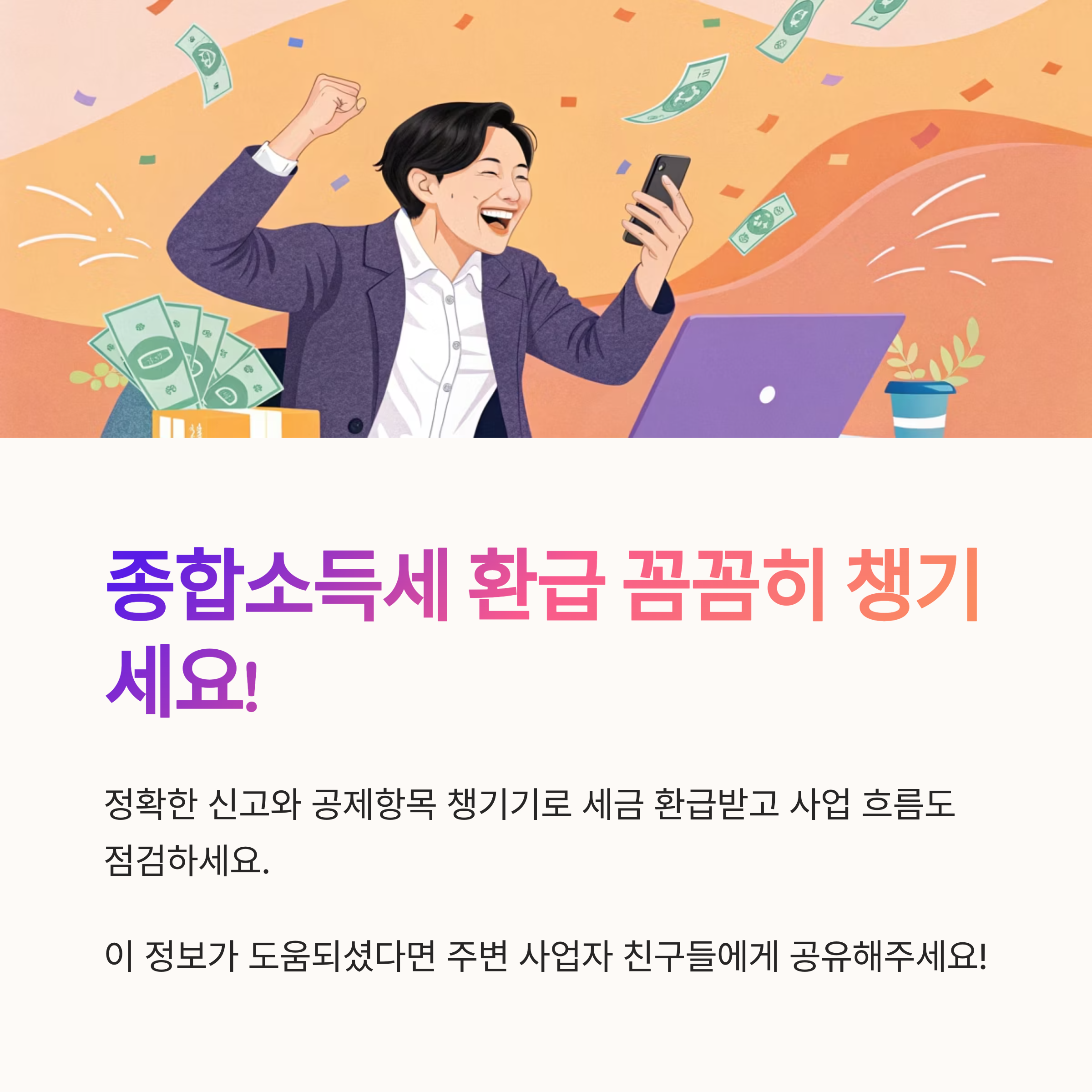 제가 생각했을 때 종합소득세 환급은 단순히 돈을 돌려받는 걸 넘어서 사업의 흐름을 점검하고 절세의 기회를 잡는 중요한 기점이에요. 꼼꼼하게 챙겨야 할 서류와 놓치기 쉬운 팁까지, 개인사업자라면 반드시 알아야 할 정보만 담았으니 끝까지 함께 읽어주세요!💸