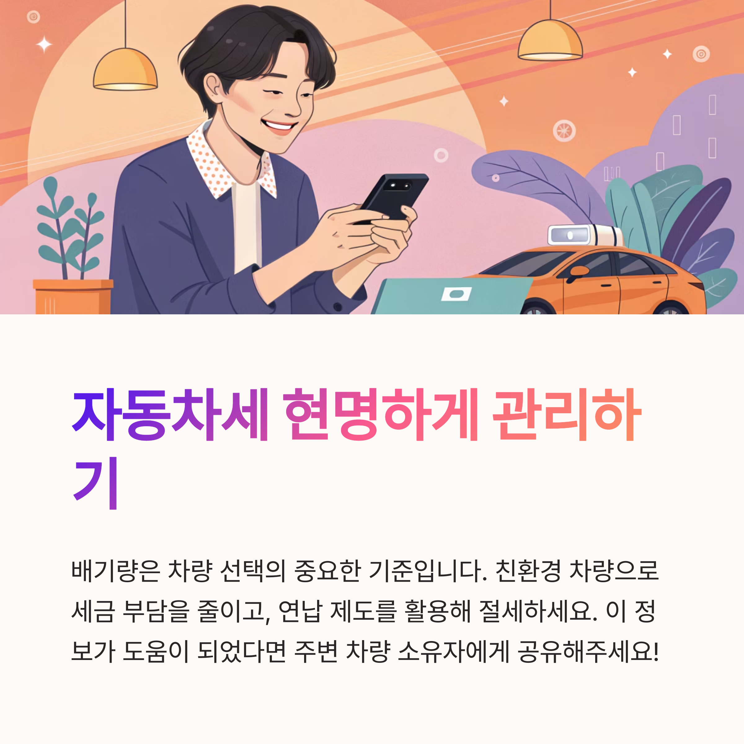 자동차세는 단순히 납부하고 끝나는 게 아니라, 차량 유지비의 핵심이 되기도 해요. 그래서 차량을 바꾸거나 신규 구매를 고려할 때, 배기량을 기준으로 자동차세까지 체크하면 훨씬 경제적인 선택이 가능하답니다.