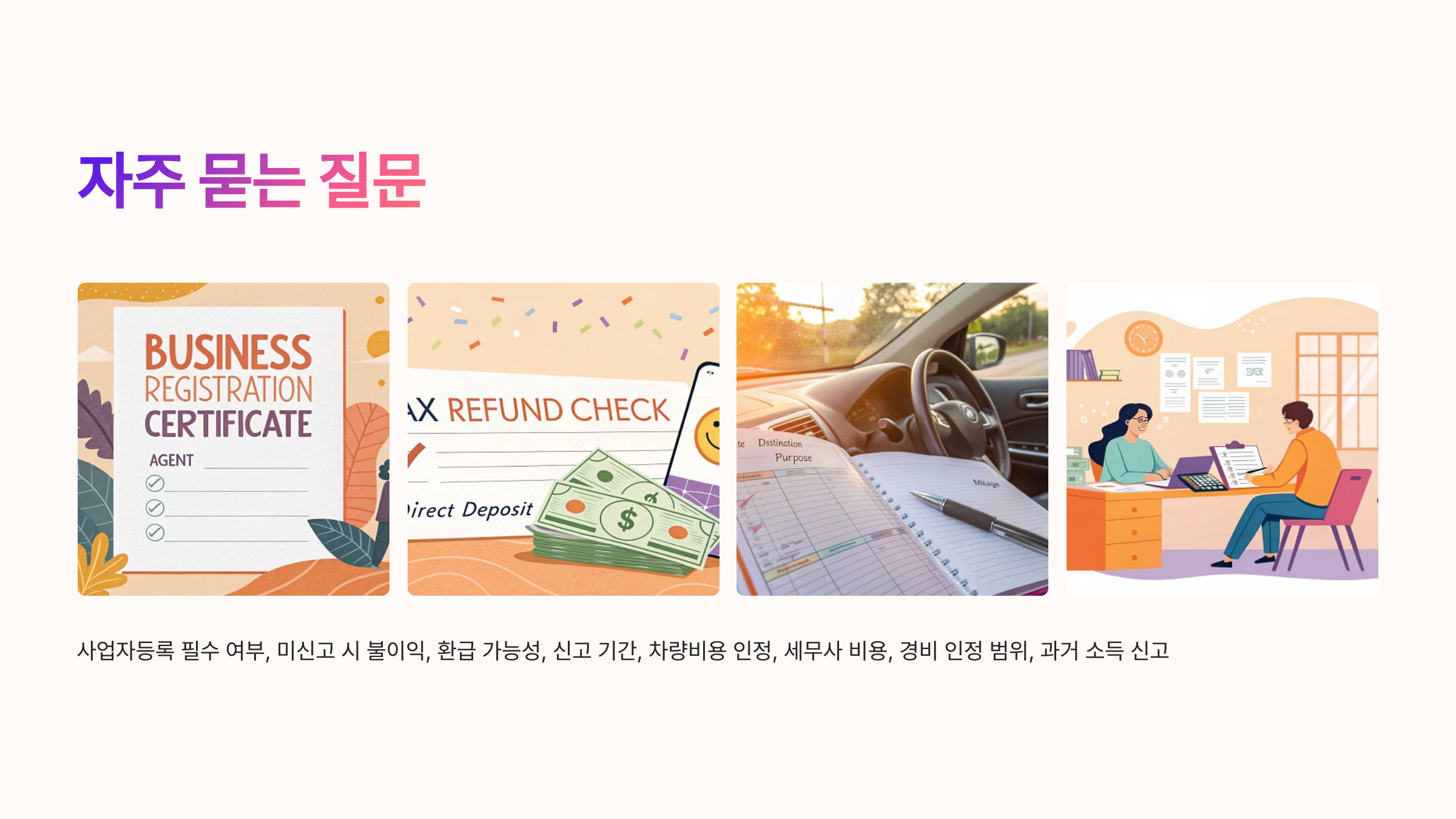 A2. 미신고 시 가산세 부과는 물론, 향후 5년간 성실신고확인 대상자로 지정될 수 있어요. 이 경우 신고절차가 더 까다로워져요.