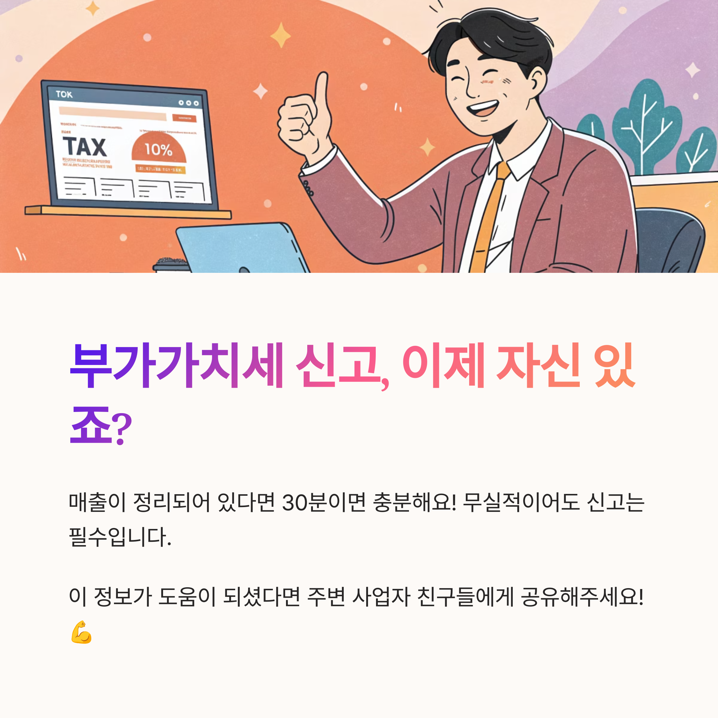사업 형태와 매출 규모에 따라 내 신고주기가 달라지는 만큼, 처음 사업을 시작할 때부터 꼼꼼히 체크해야 해요!