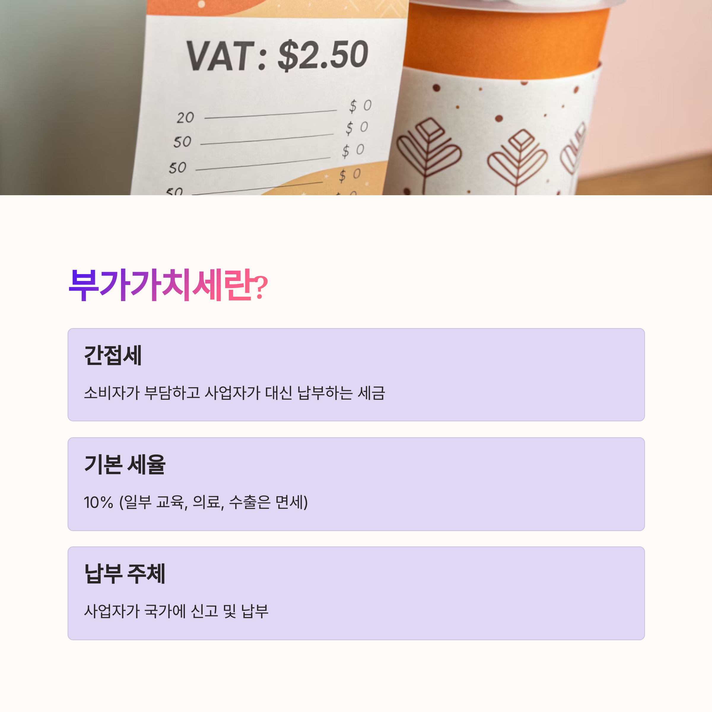 부가가치세(VAT)는 우리 일상생활 속 거의 모든 거래에 포함돼 있는 세금이에요. 카페에서 커피를 마시거나, 온라인 쇼핑몰에서 물건을 살 때도 이 부가가치세가 숨어 있죠. 그런데 이걸 사업자가 신고해야 한다는 사실, 알고 있었나요?