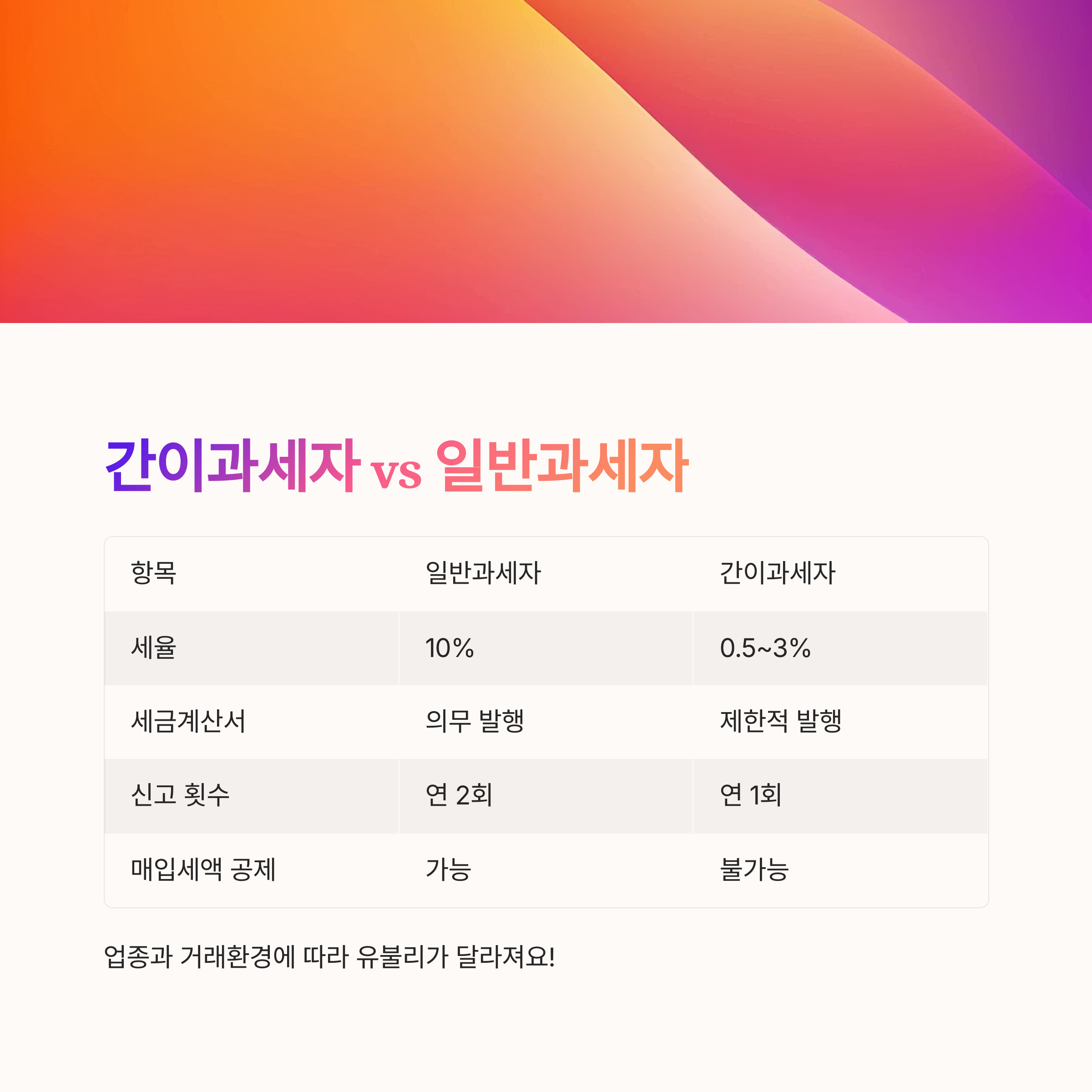 ⚖️ 과세자별 주요 차이 비교
