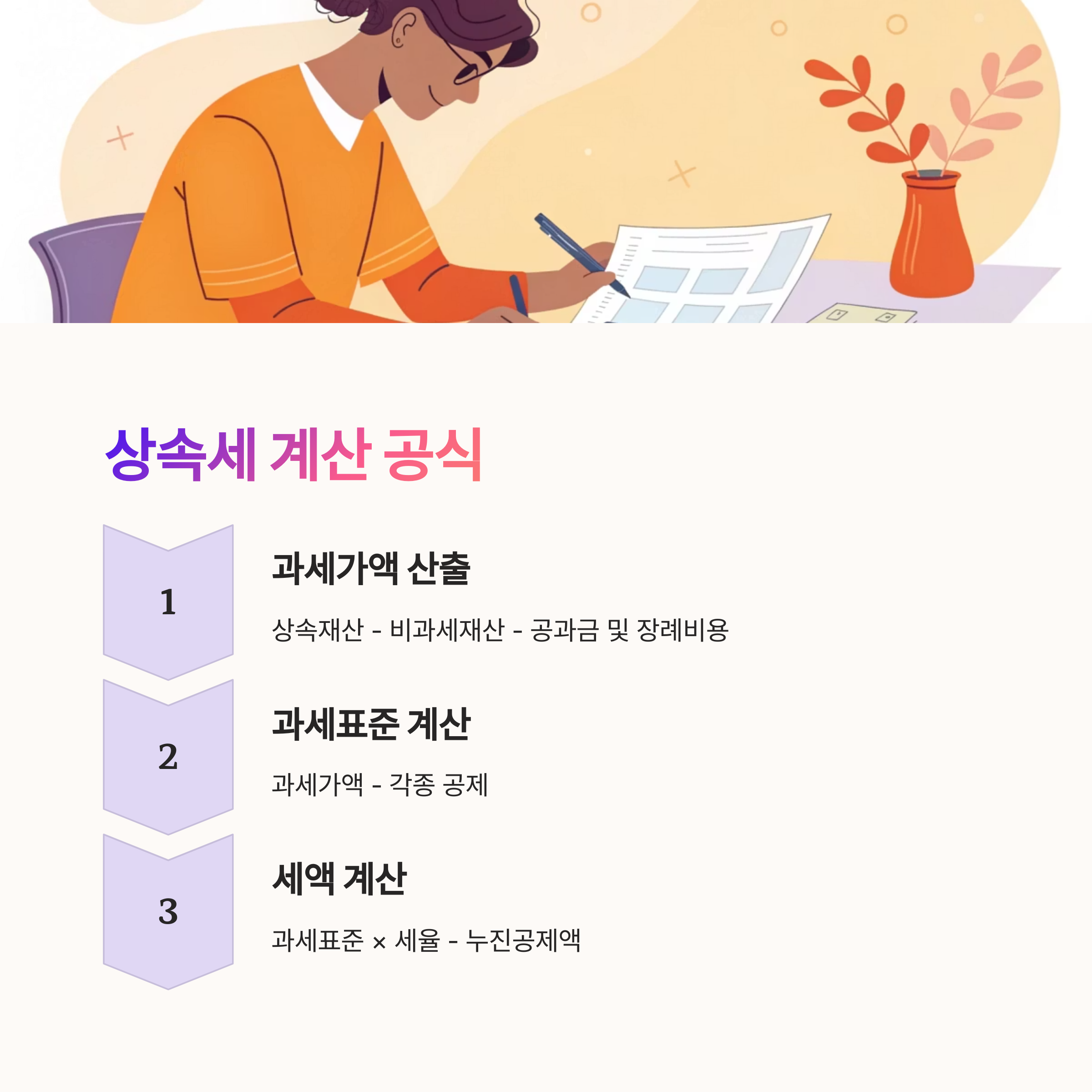 상속세 계산은 복잡해 보일 수 있지만, 구조만 이해하면 생각보다 쉽게 접근할 수 있어요. 기본 공식은 다음과 같아요: