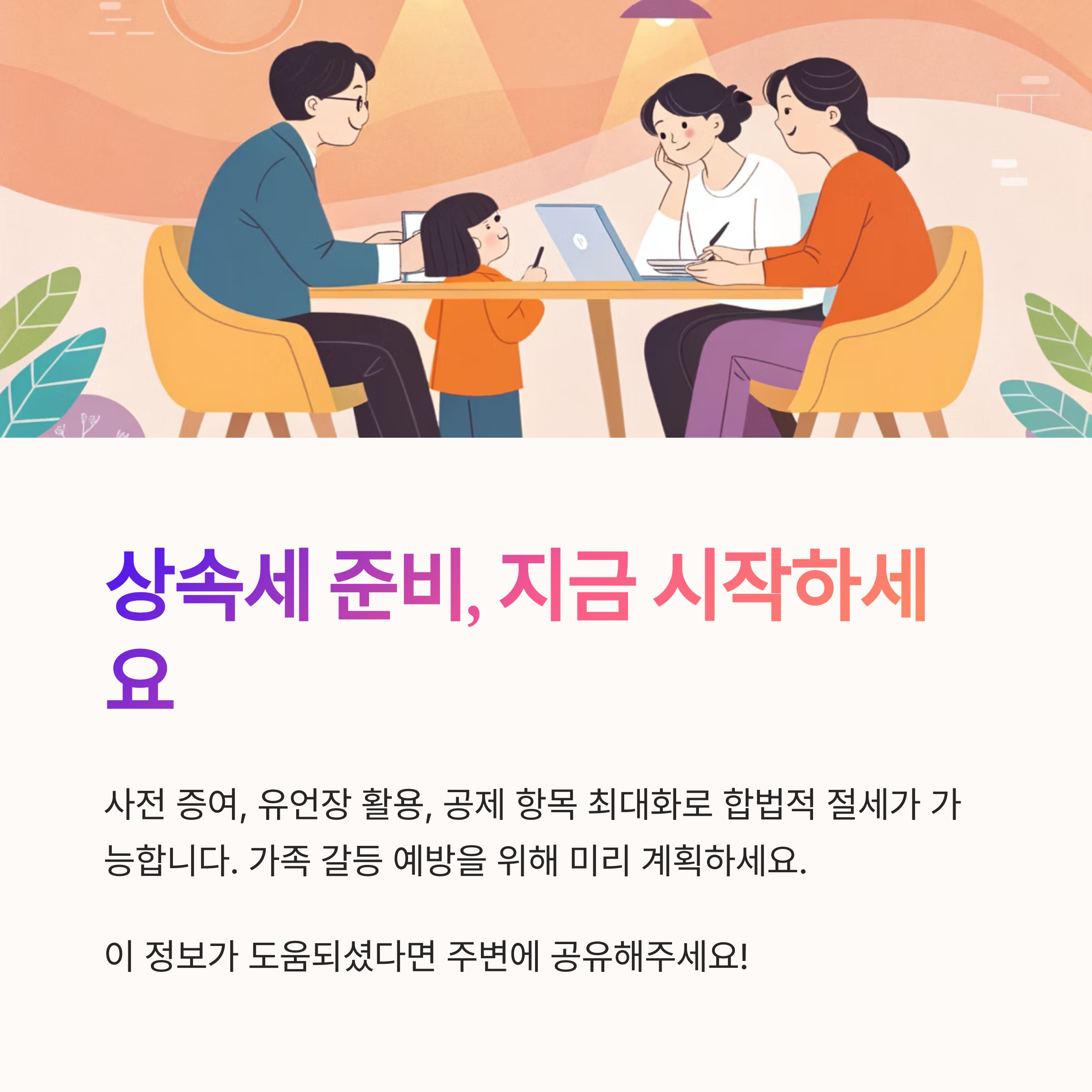 상속세 문제는 금전적인 측면 외에도 가족 갈등과 직결될 수 있어요. 그래서 사전에 상속 계획을 세우는 것이 경제적, 심리적 비용을 아끼는 지름길이에요.