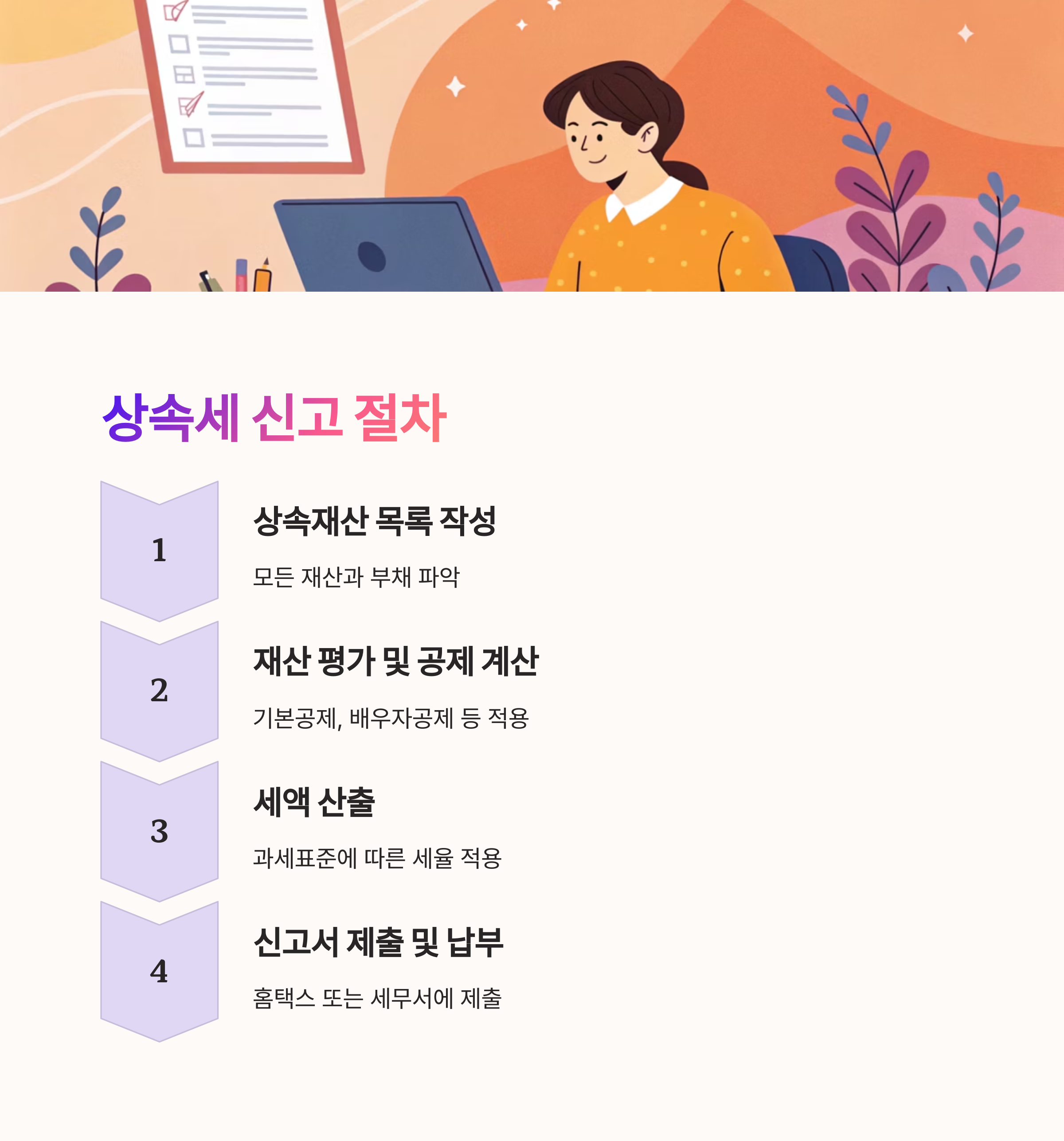 실제로 많은 사람들이 상속세 신고를 처음 접하게 되면 어디서부터 시작해야 할지 몰라 당황하곤 해요. 하지만 구조를 이해하면 그렇게 복잡하지 않답니다. 기본적으로 '상속재산 목록 작성 → 평가 → 공제 계산 → 세액 산출 → 신고서 제출 → 납부' 순서로 진행돼요.