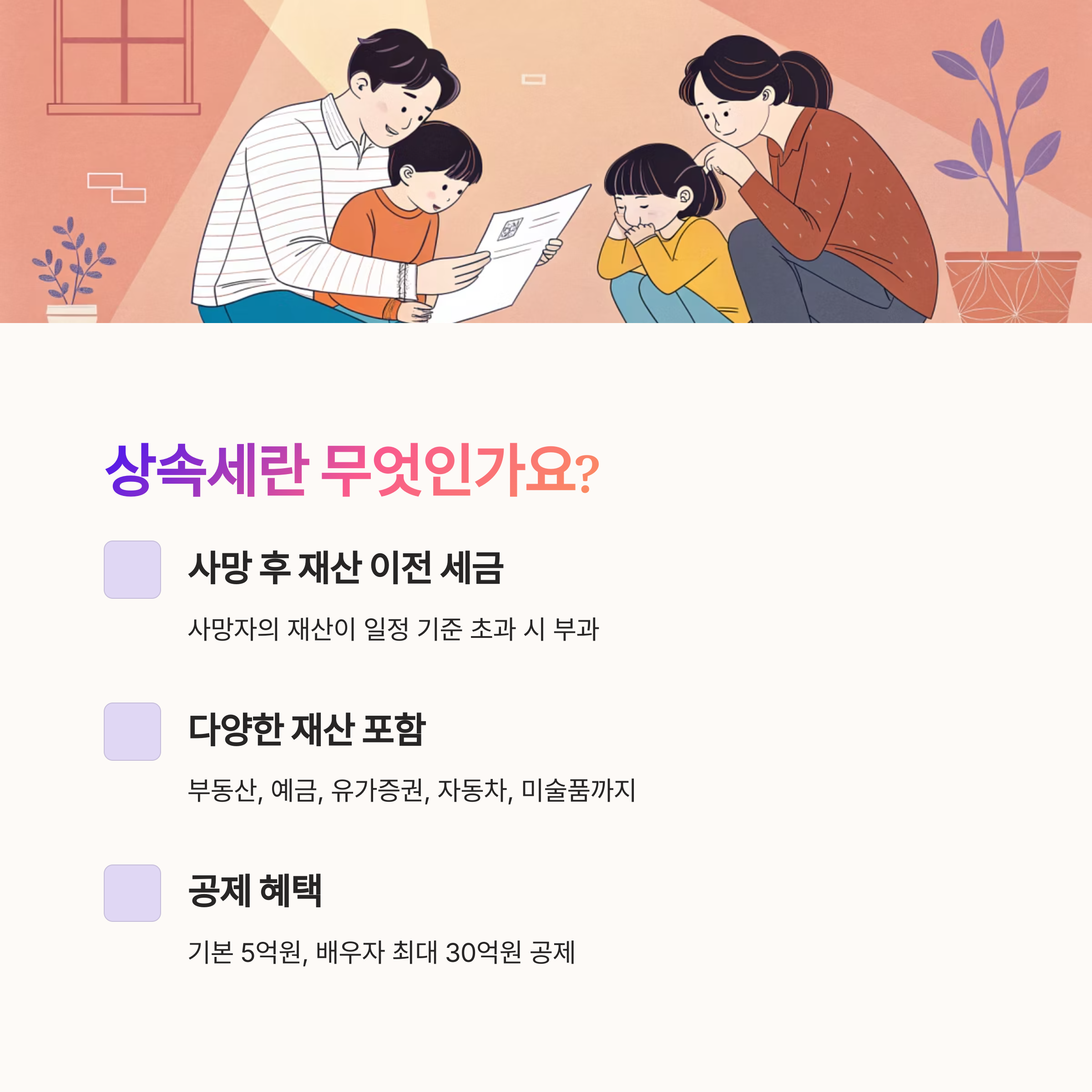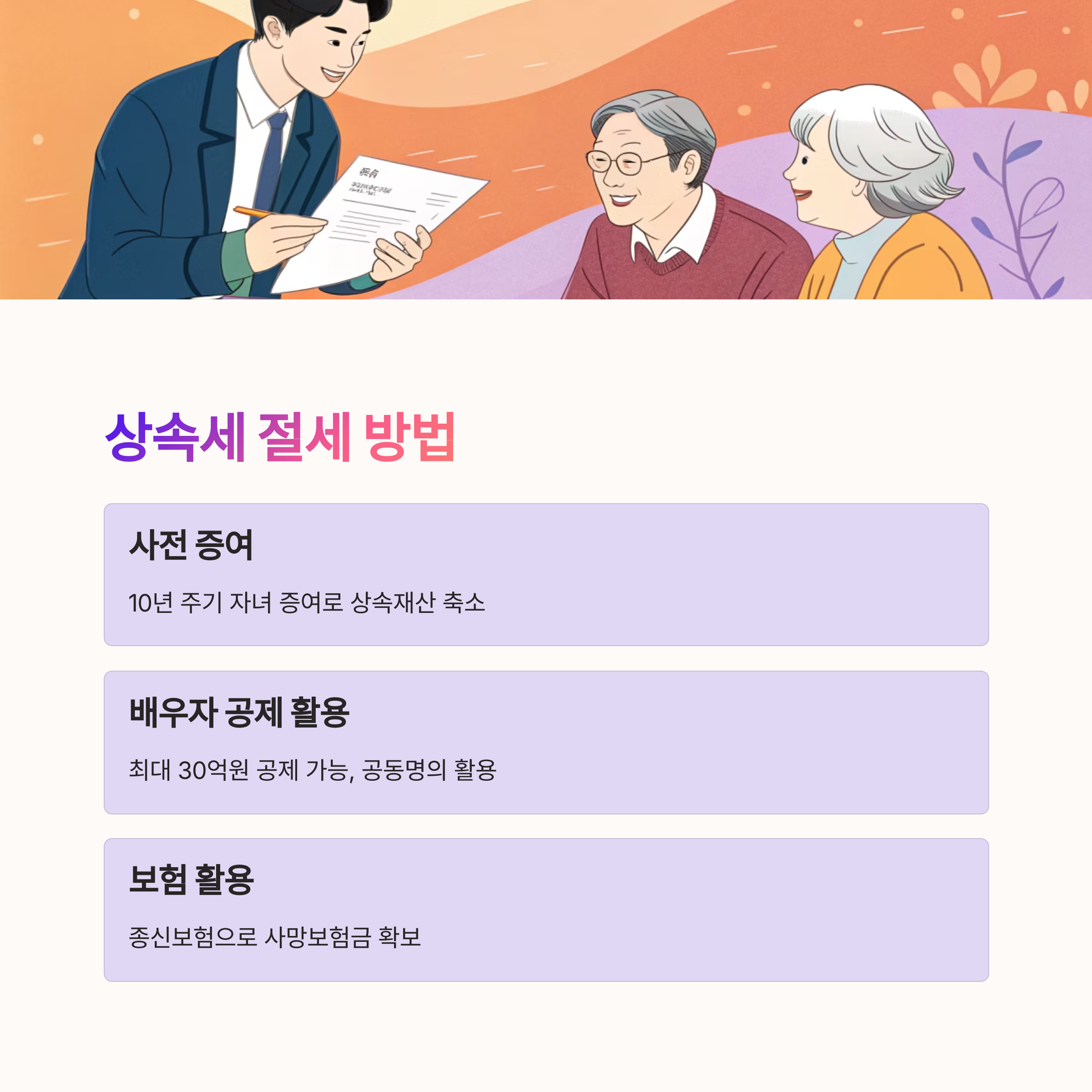 절세 전략은 단순히 세금을 줄이는 게 아니라, 상속인들이 원활하게 재산을 나누고 분쟁 없이 절차를 마무리할 수 있도록 도와주는 역할도 해요.
