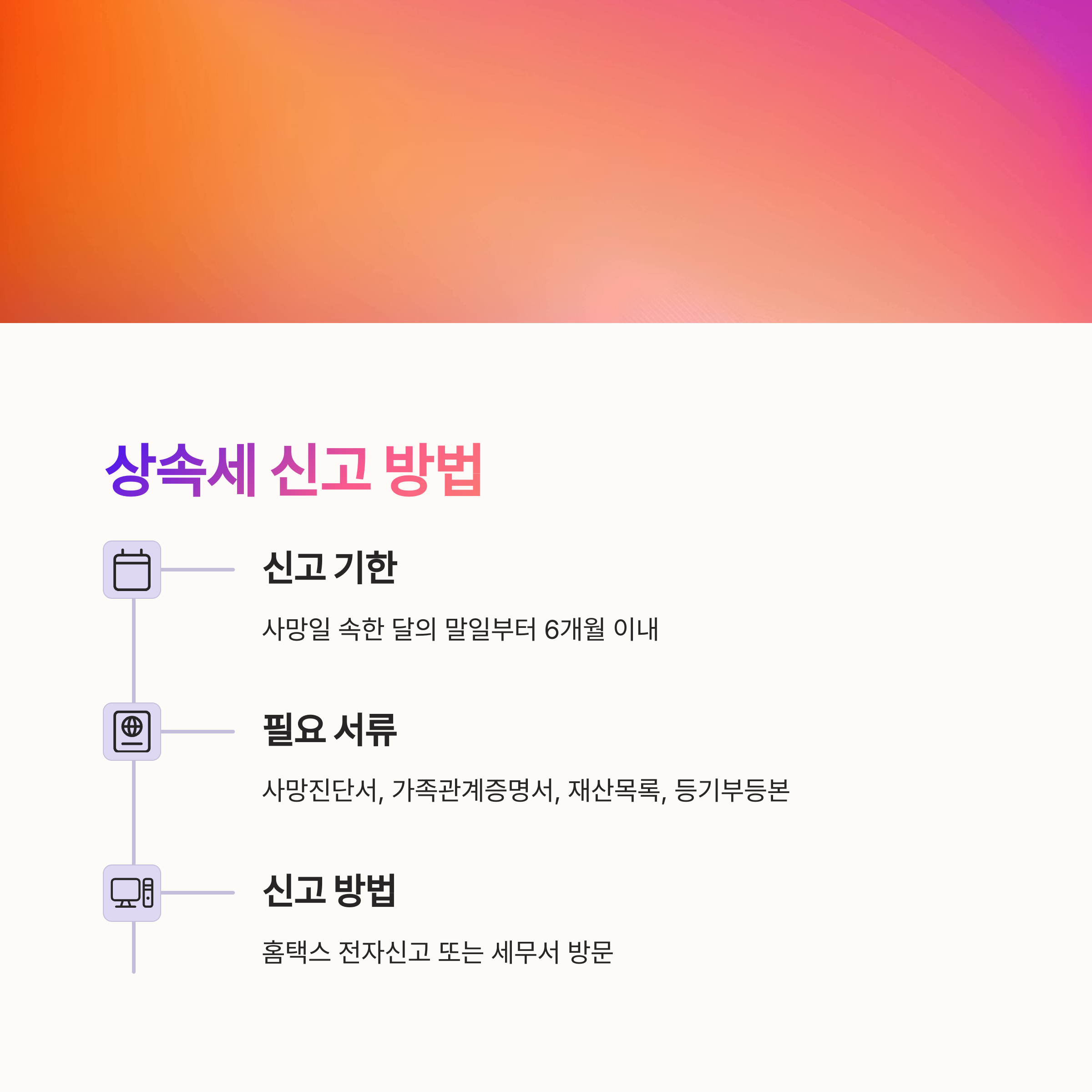 상속세 신고는 피상속인의 사망일이 속한 달의 말일부터 6개월 이내에 해야 해요. 예를 들어 3월 10일에 사망하셨다면 9월 30일까지 신고해야 해요. 단, 해외에 있는 경우에는 9개월까지 연장 가능하답니다. 🕐