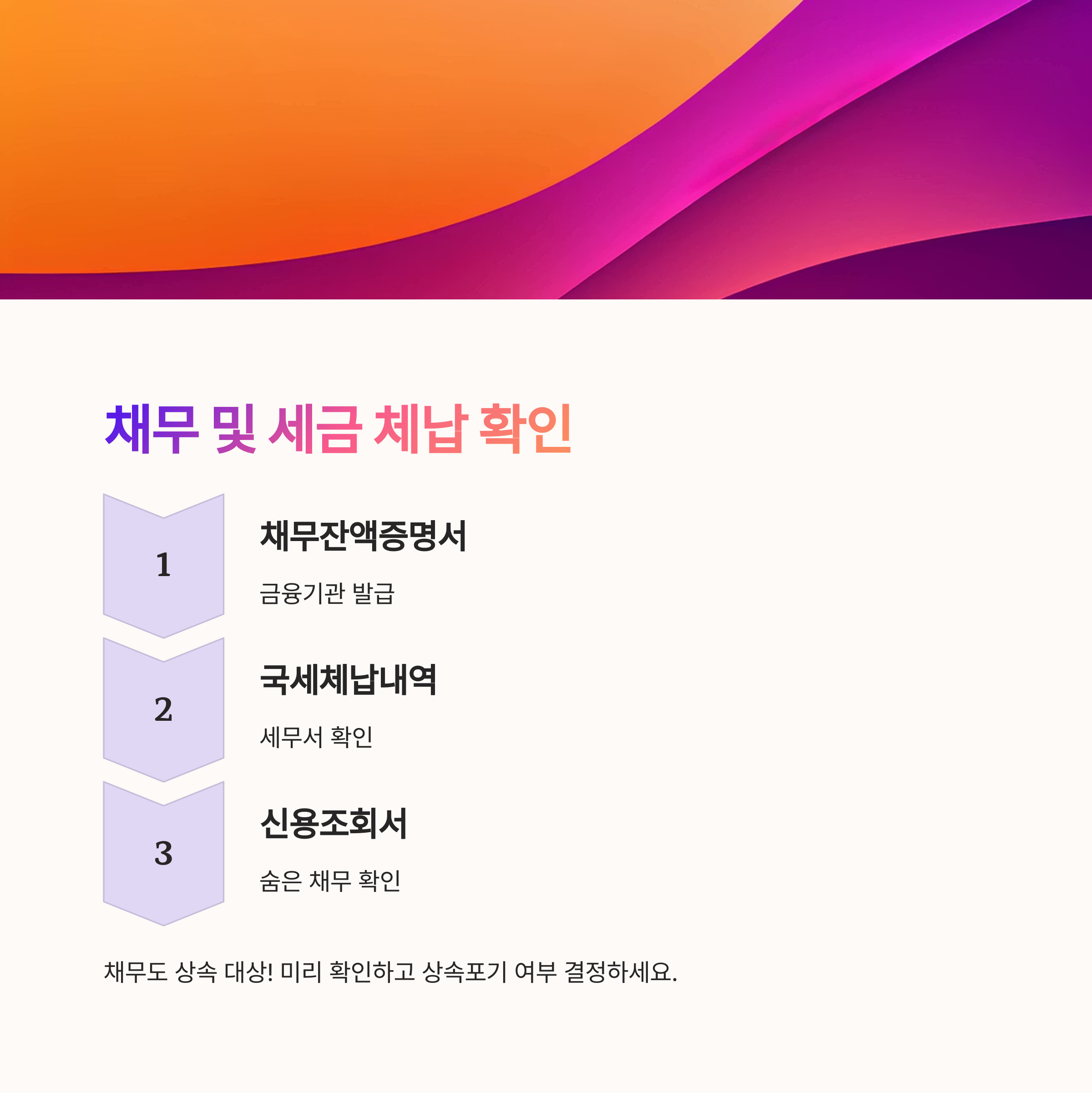 우선 은행이나 카드사에서 채무잔액 증명서를 발급받는 게 좋아요. 대출금, 연체금, 미지급이자 등을 확인할 수 있으며, 상속세 신고 시 이를 공제 항목으로 적용할 수 있거든요. 이처럼 채무 정보는 절세 전략에도 큰 역할을 해요.