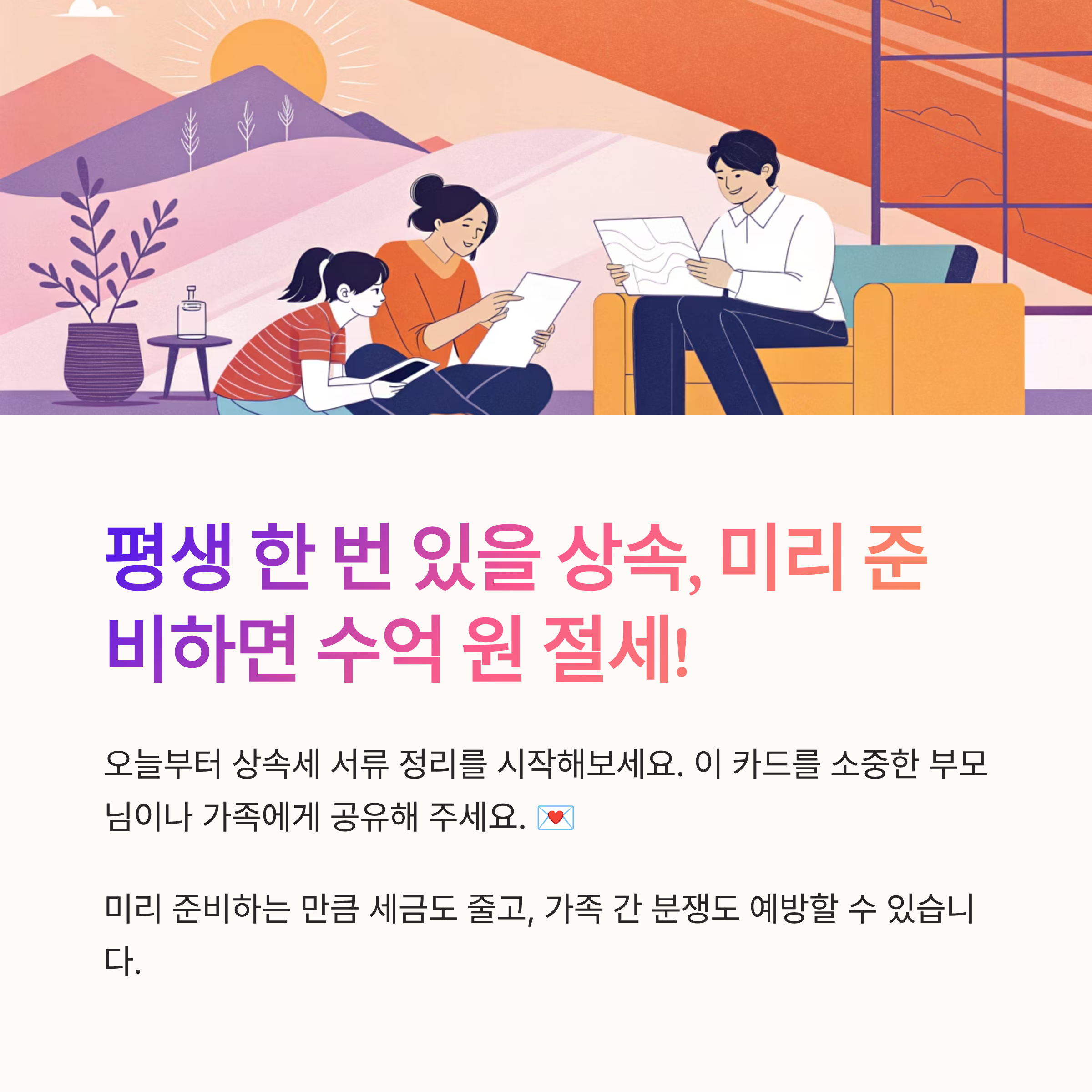 📌 본 콘텐츠는 일반적인 정보 제공을 목적으로 하며, 법적·세무적 자문으로 간주되지 않습니다. 실제 상속세 신고 및 전략 수립 시 반드시 관련 전문가와 상담하세요.
