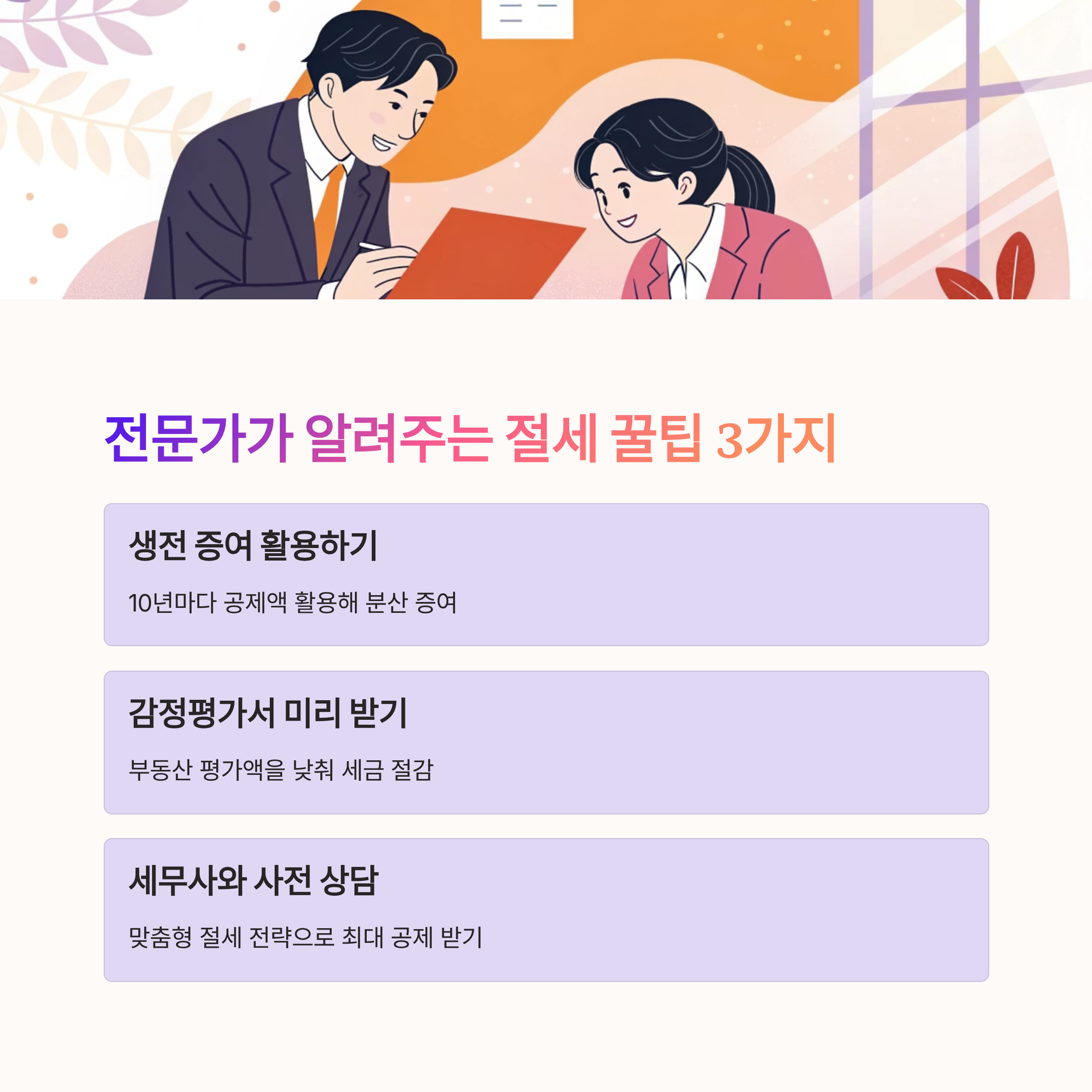| 생전 증여 활용 | 10년 단위 증여세 공제액 확인 필수 |