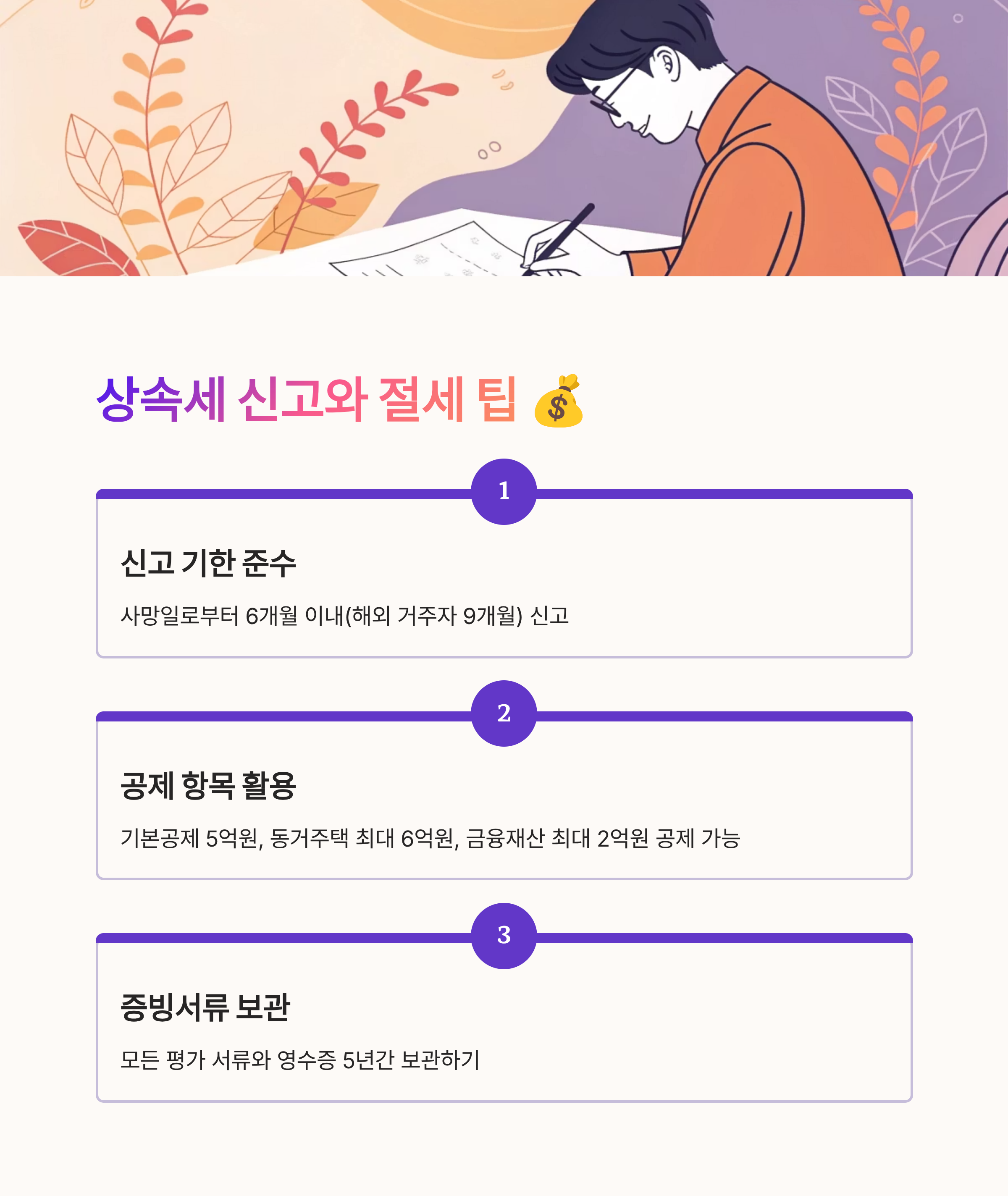 다음 파트에서는 상속 과정에서 절세를 위해 꼭 알아둬야 할 ‘세금과 신고 유의사항’을 정리해드릴게요. 특히 상속세는 적게 내고 싶다면 반드시 체크해야 해요!