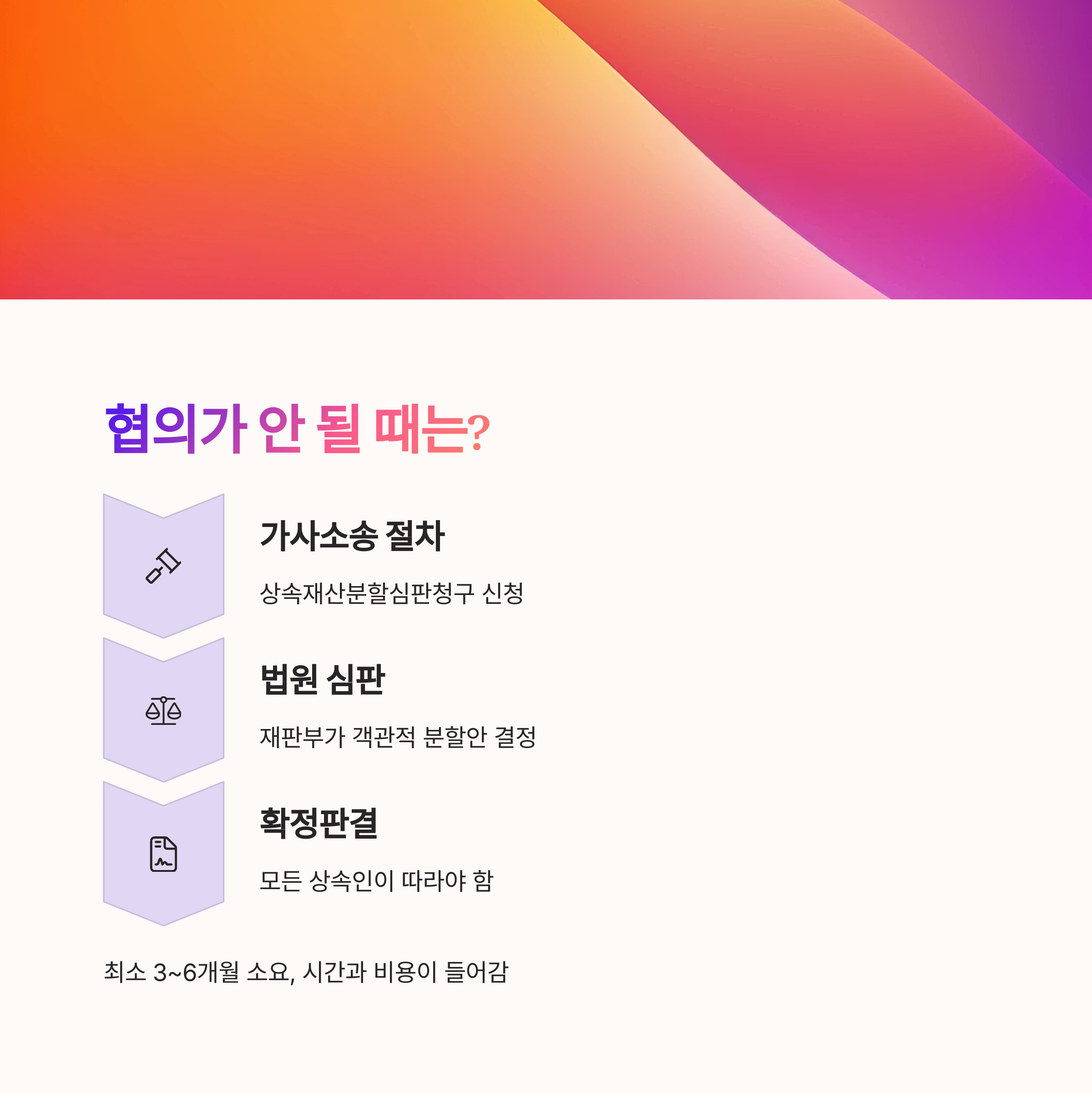 특히 재산이 부동산 중심이거나 채무가 포함되어 있다면 법원의 개입이 현실적인 선택일 수 있어요. 이럴 경우 부동산 감정가를 기준으로 형평성 있는 배분이 이뤄지니, 감정에 의존하기보다는 객관적 자료로 접근하는 것이 좋아요.