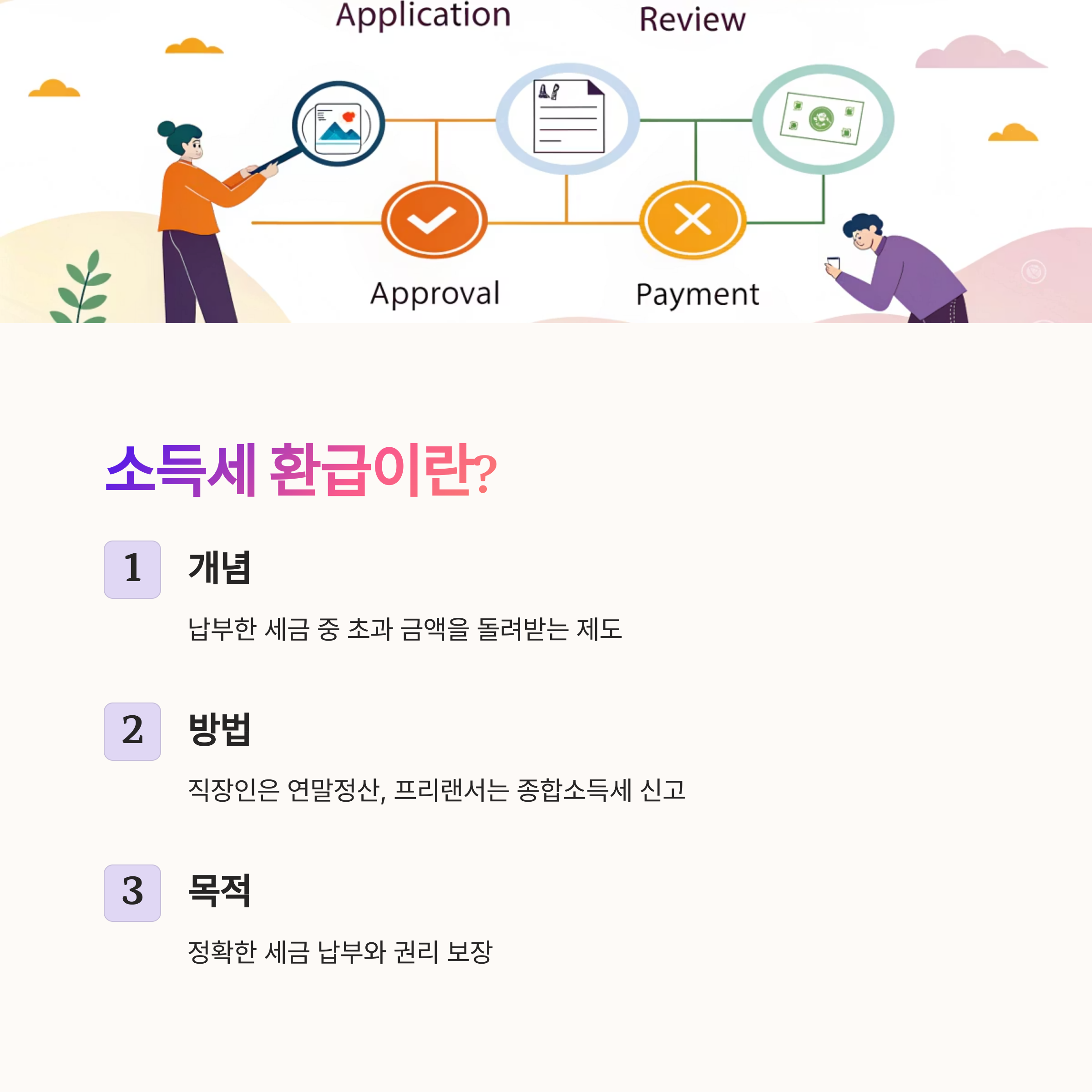 소득세 환급은 납세자가 한 해 동안 납부한 세금 중에서 실제로 납부해야 할 세액보다 더 많이 냈을 경우 그 초과 금액을 돌려받는 제도를 말해요. 쉽게 말하면, ‘너무 많이 냈으니 돌려줄게요’라는 개념인 셈이죠.