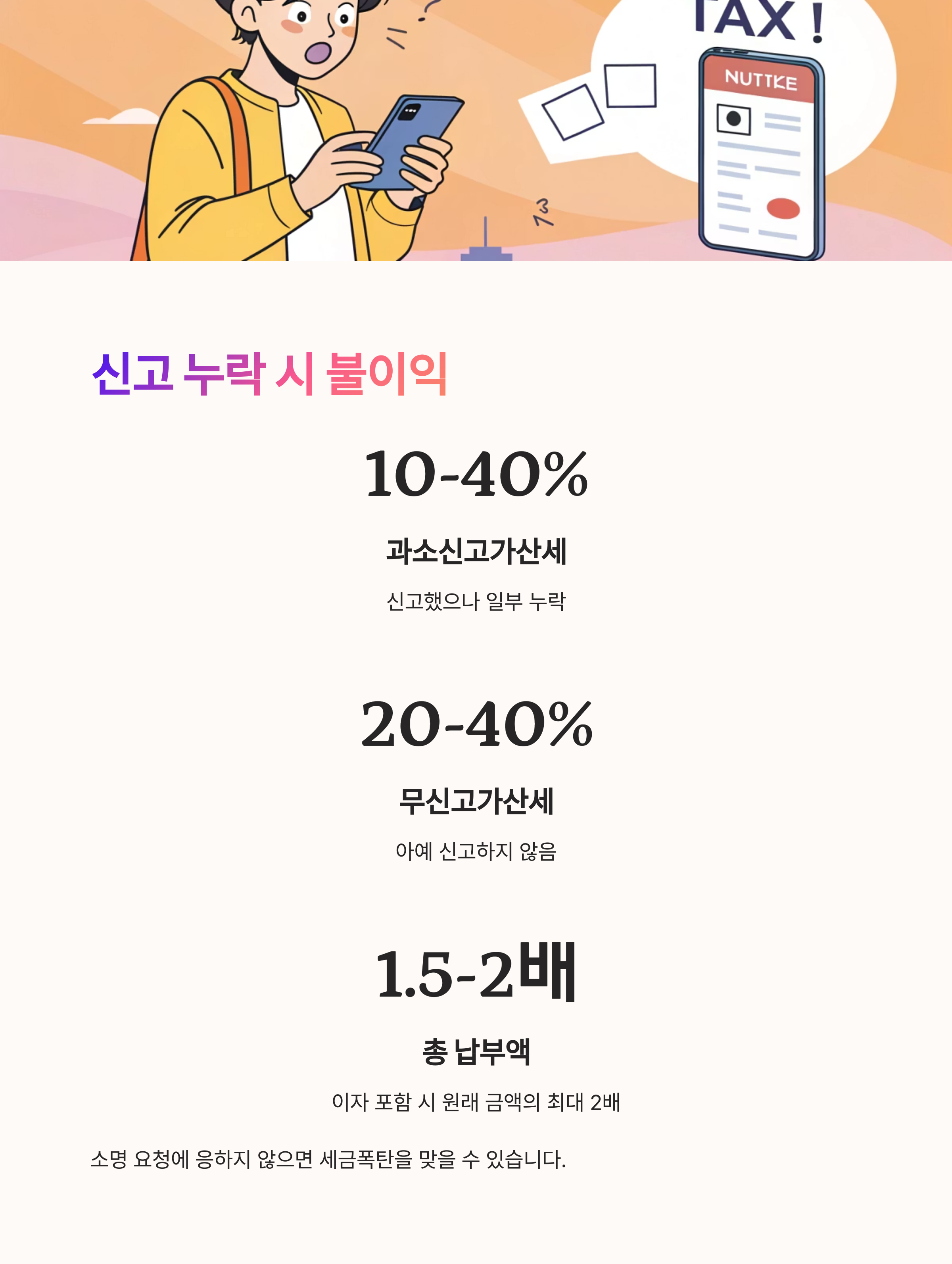 | 무신고가산세 | 아예 신고하지 않음 | 20~40% |