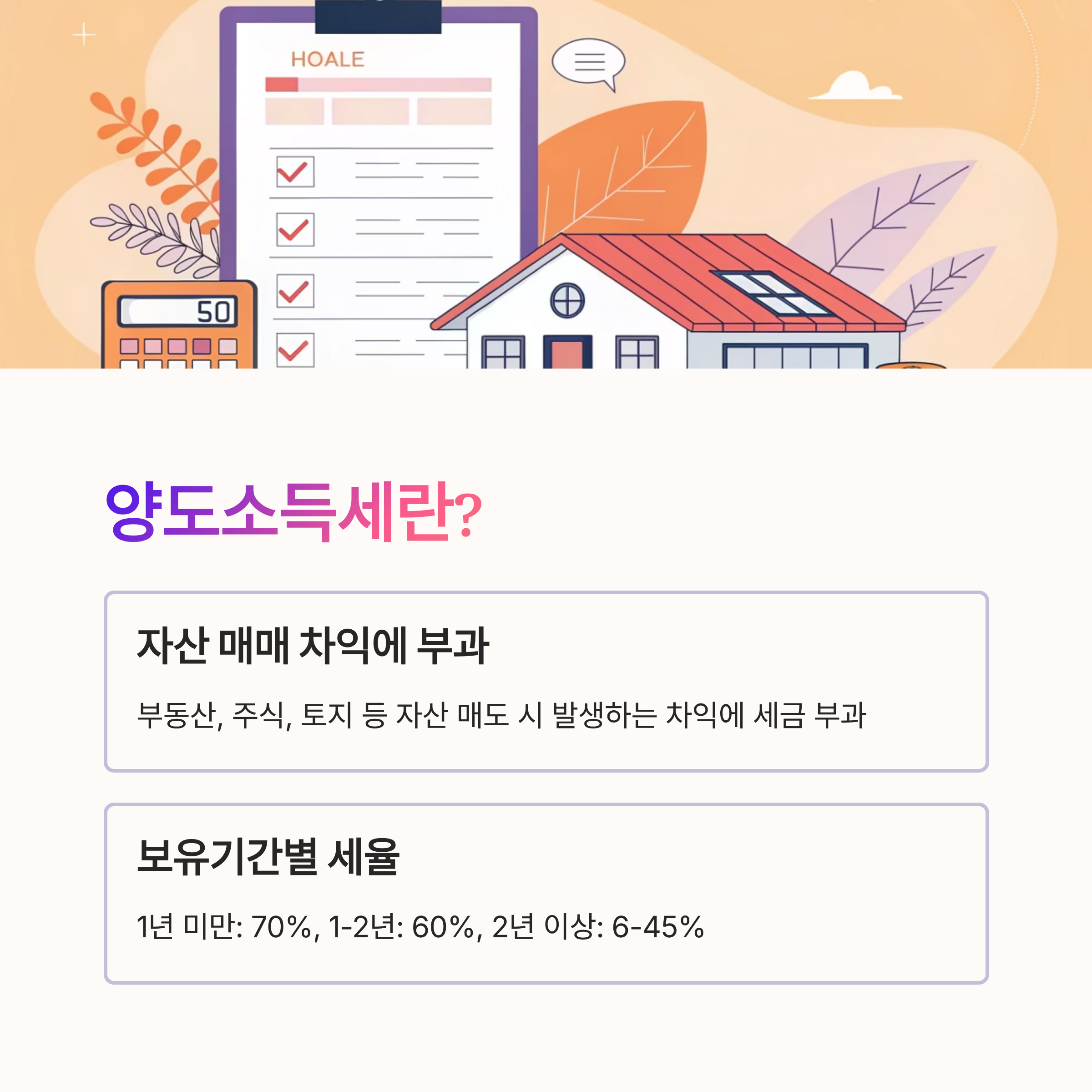 세율은 보유 기간과 자산 종류에 따라 달라요. 단기 보유 부동산은 세율이 높고, 장기 보유할수록 세율이 낮아지는 구조죠. 이렇게 세금을 부과하는 이유는 단기 시세 차익을 억제하고, 투기 수요를 줄이기 위함이에요.