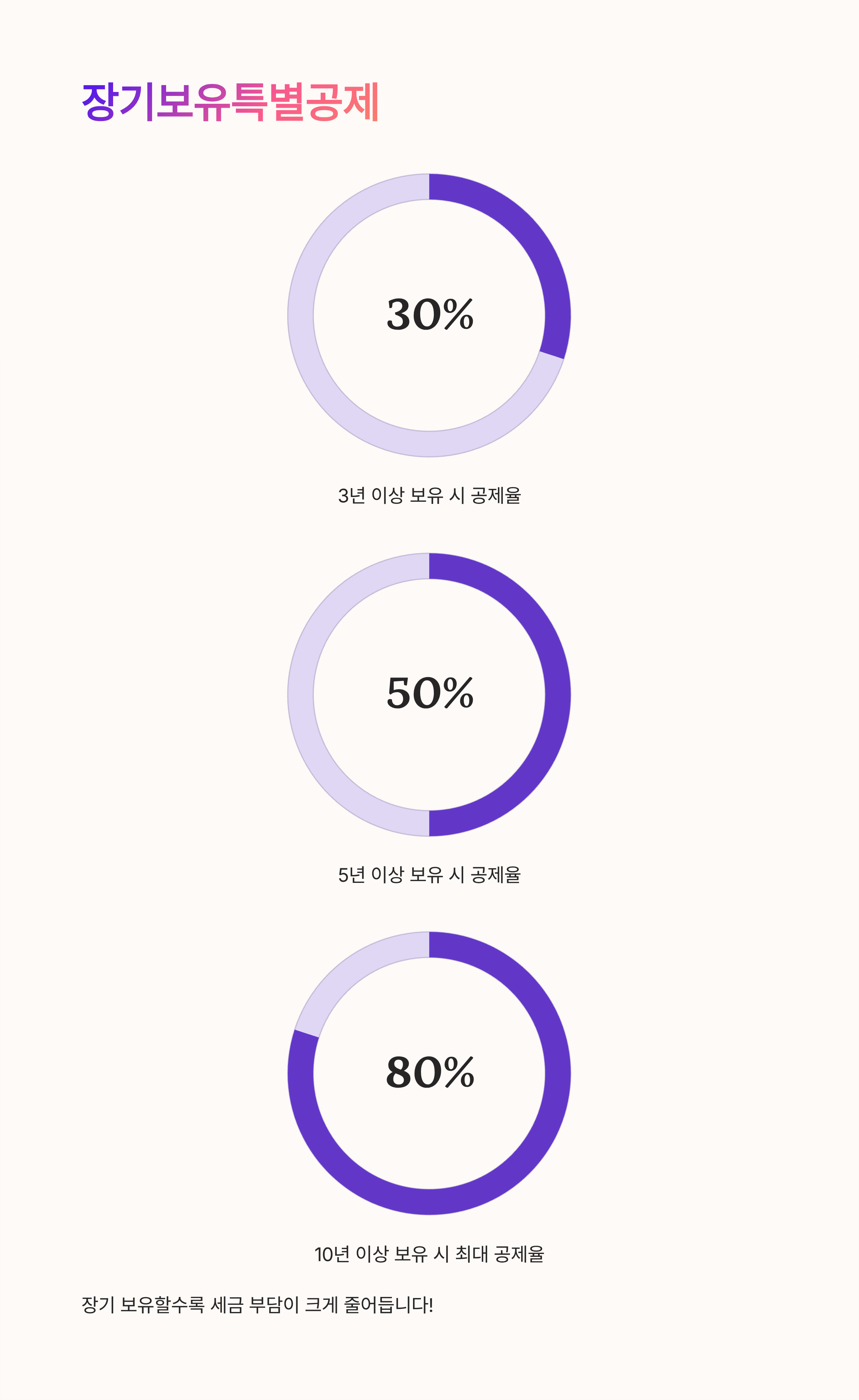 | 장기보유특별공제 | 10년 이상 보유 | 30~80% 공제 |