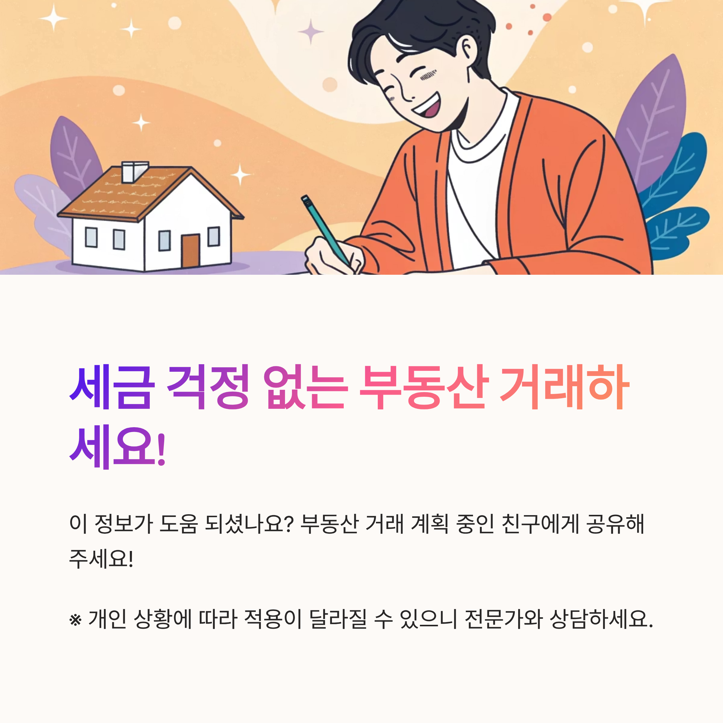 이런 특수 사례는 일반적인 주택 매매와는 다른 규정을 적용하기 때문에, 반드시 사전에 세법 조항을 확인하는 게 중요해요.