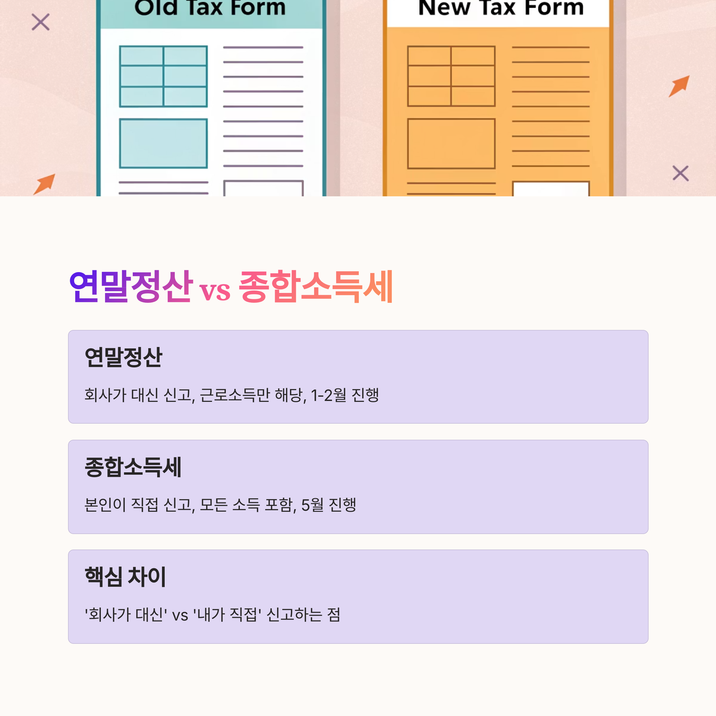 이 두 개념을 제대로 구분하지 않으면 예상치 못한 세금 폭탄을 맞거나, 환급받을 수 있는 금액조차 놓칠 수 있어요. 그래서 이번 글에서는 연말정산과 종합소득세 신고의 차이점을 확실하게 정리해 줄게요. 두 신고가 어떤 점에서 다르고, 누구에게 어떤 의무가 생기는지, 또 어떻게 준비해야 하는지를 아주 자세히 알려줄 거예요.