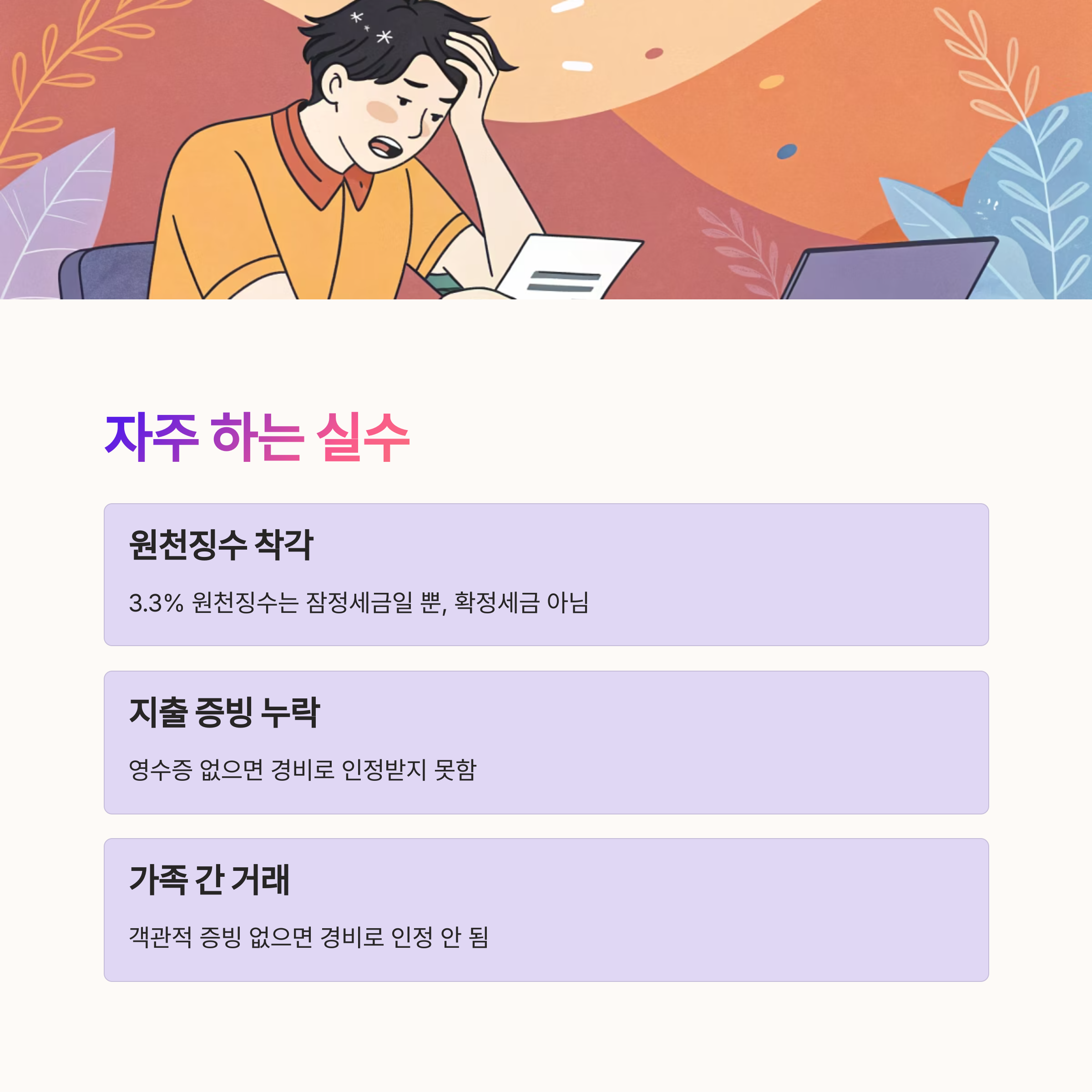 | 원천징수 착각 | 3.3% 원천징수는 확정 아님 | 5월 정산 필수 |