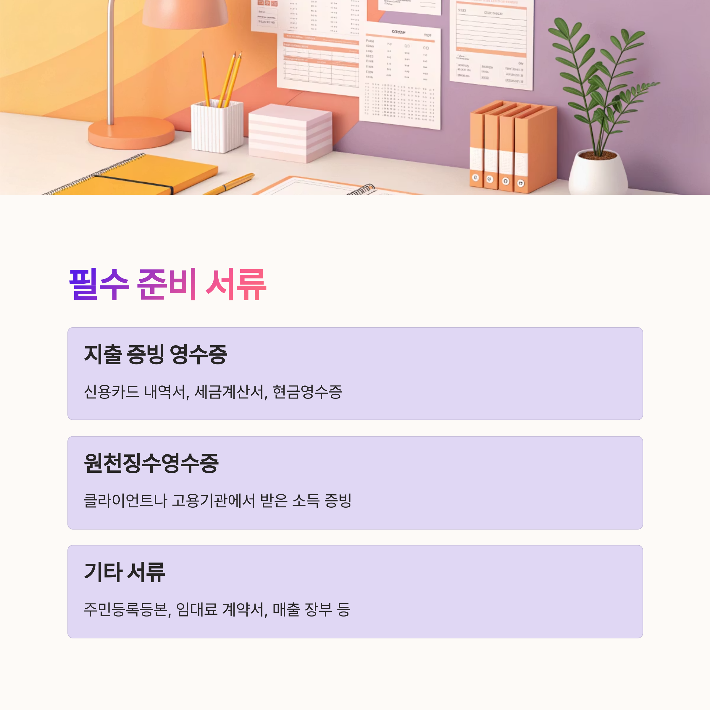 | 1. 자료 준비 | 원천징수영수증, 지출 증빙 등 준비 |