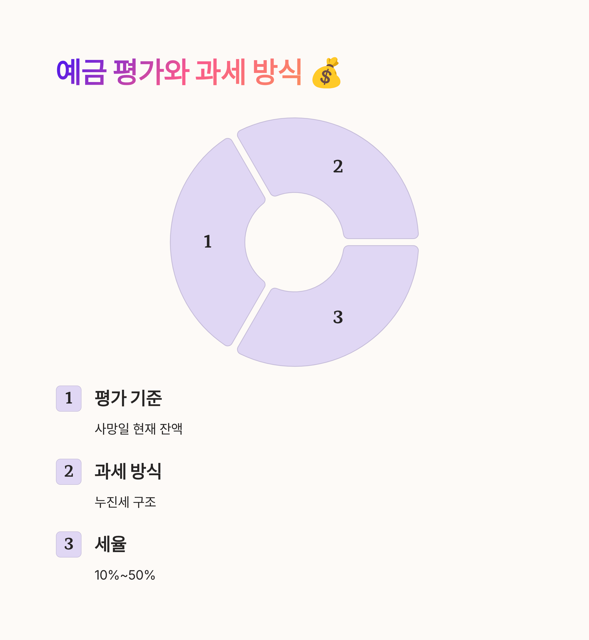 예금 외에도 부동산, 증권, 자동차 등 모든 재산을 합산한 후, 공제 항목을 적용한 다음 남은 금액에 세율이 적용돼요. 따라서 예금만 단독으로 계산해서는 정확한 세액이 나오지 않고, 전체 상속재산과 공제를 종합적으로 봐야 한답니다. 예금이 비율상 많을 경우, 이자가 전체 세액에 크게 작용할 수 있어요.