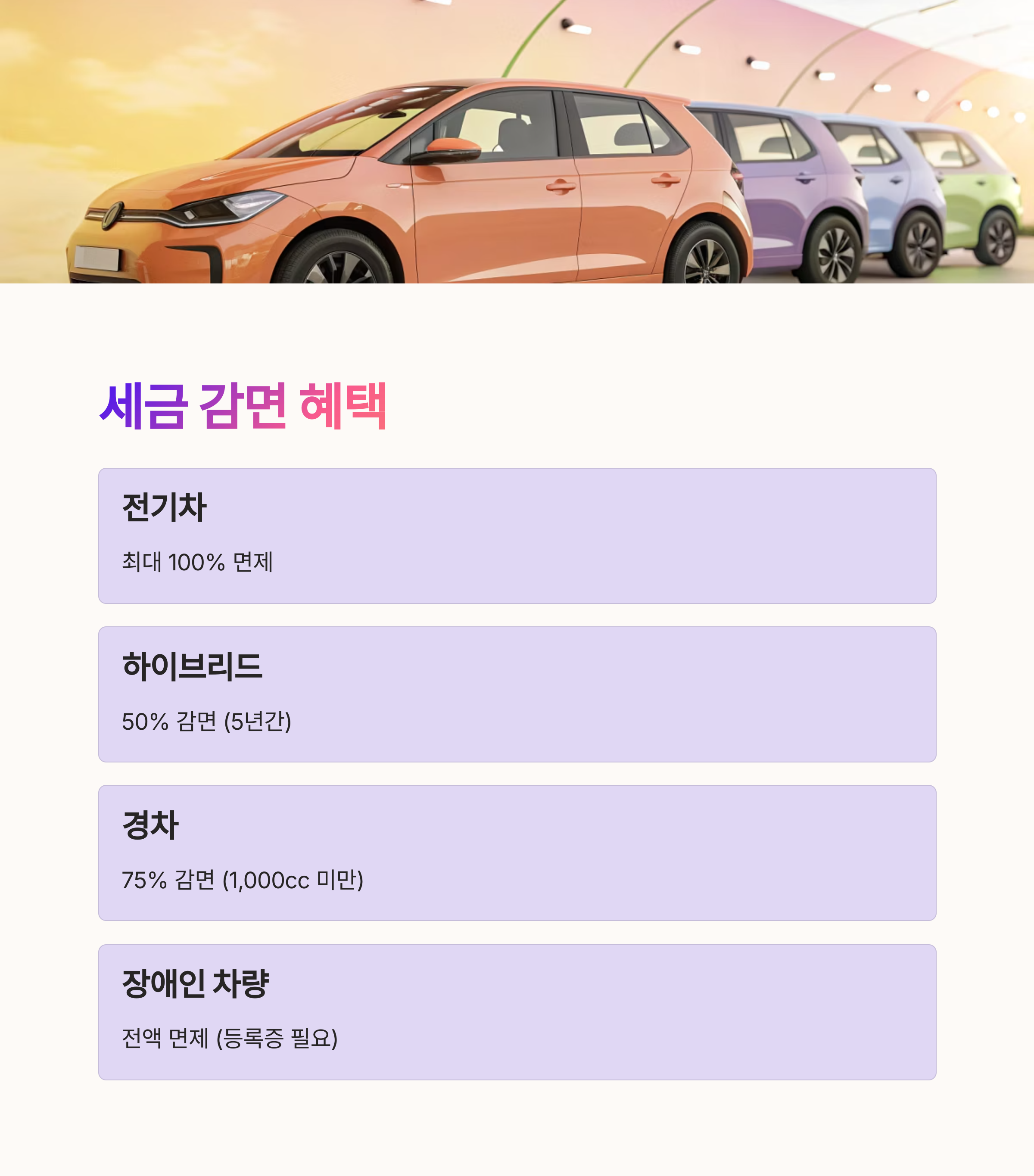 | 경차 | 75% 감면 | 1,000cc 미만 |