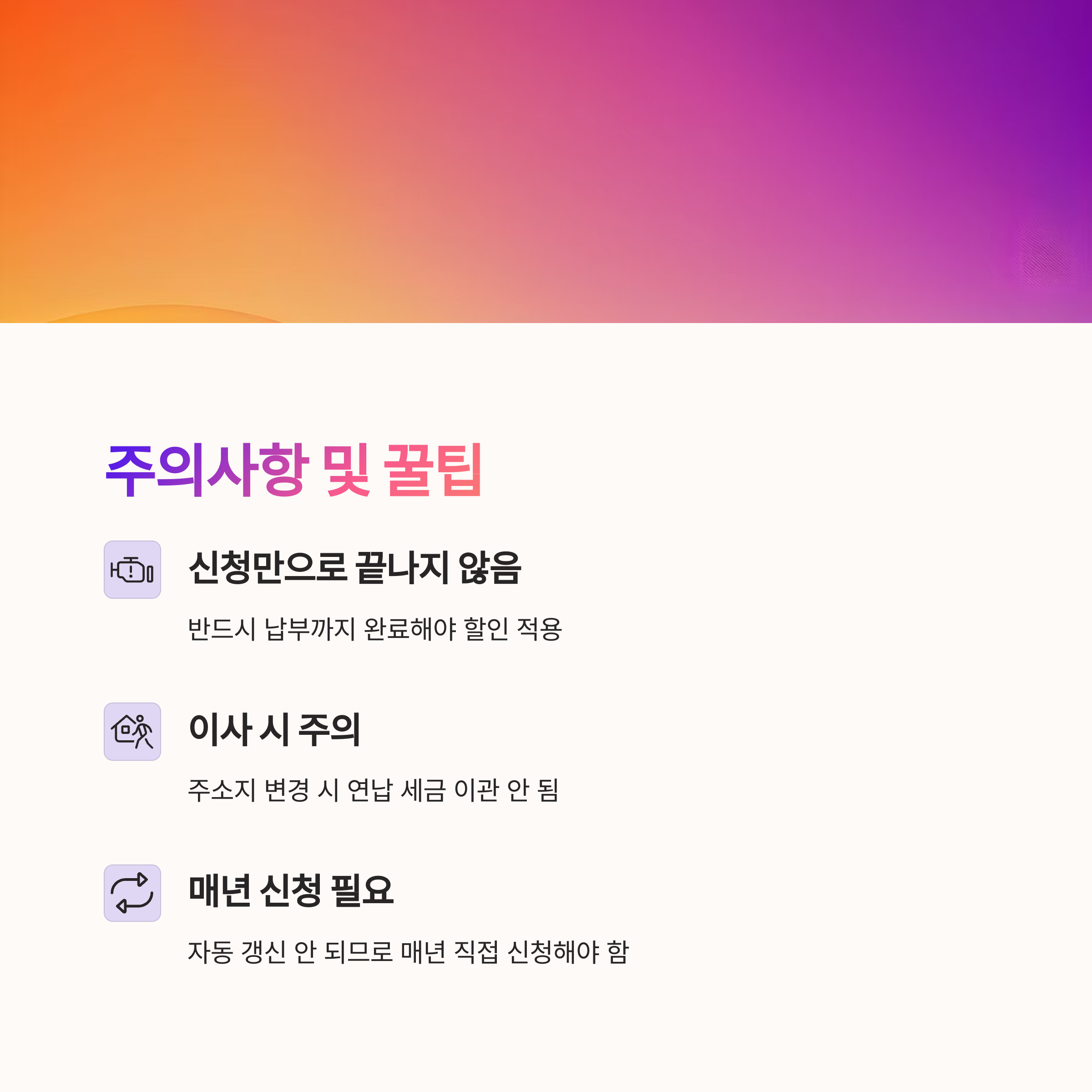 마지막 꿀팁! 연납은 매년 신청해야 해요. 자동 갱신이 되지 않기 때문에 매년 1월이나 원하는 시점에 직접 신청하는 걸 잊지 말아야 해요. 📅