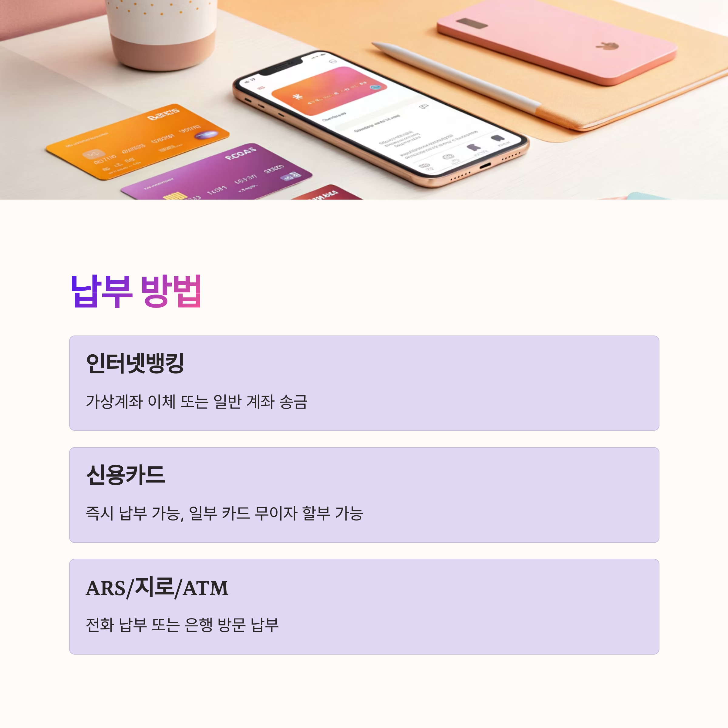 납부 수단은 정말 다양하죠? 자기 상황에 맞는 걸 골라서 꼭 기간 내에 납부 완료하는 거, 잊지 마세요! ⏰