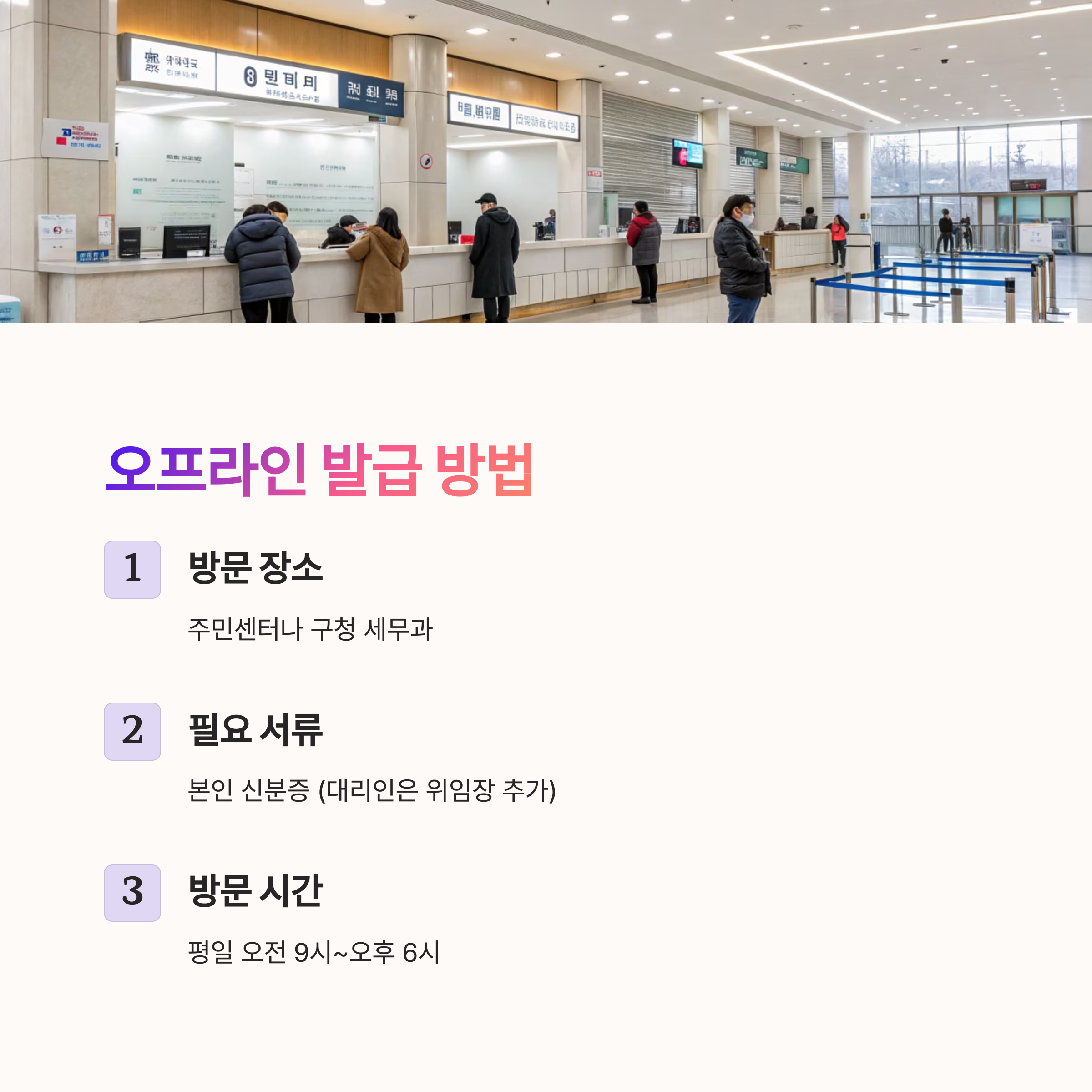 단, 평일 업무시간(오전 9시~오후 6시) 내에만 방문 가능하니 점심시간이나 마감 직전은 피하는 게 좋아요. 주민센터마다 대기 인원이 많을 수 있으니 여유 있게 방문하는 것이 좋아요.