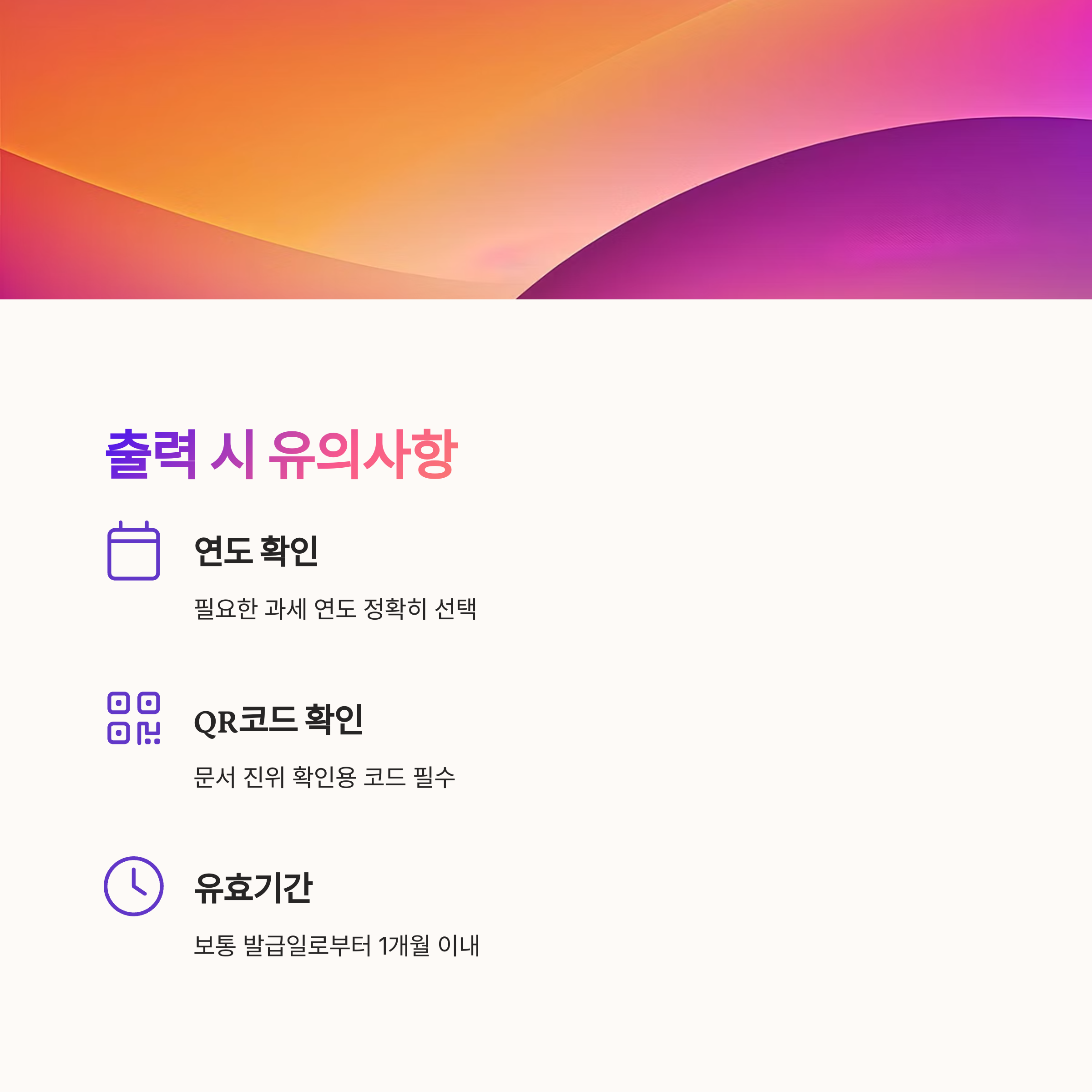 이 서류는 세금 신고 확인, 금융기관 제출, 임대차 계약 등 다양한 곳에서 필요해요. 특히 대출 신청 시 은행에서 요구하는 대표적인 서류 중 하나이기 때문에, 정확한 납부 기록이 중요하답니다.