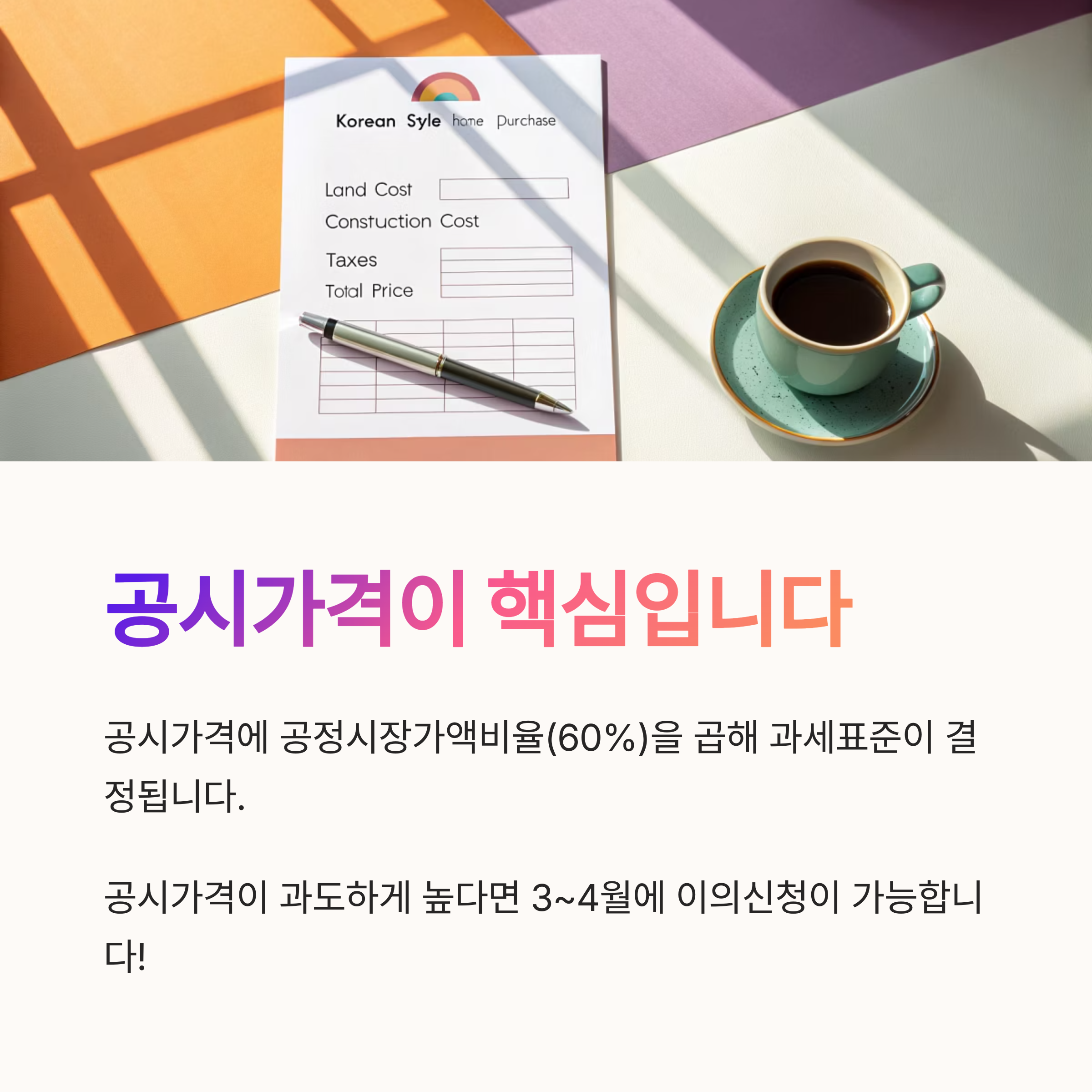 이처럼 계산 구조가 복잡해 보여도 핵심은 ‘공시가격’이라는 점이에요. 공시가격이 오르면 세금도 늘어나기 때문에 매년 발표되는 공시지가를 꼭 체크하고, 이상하게 올랐다면 이의신청을 고려해야 해요.