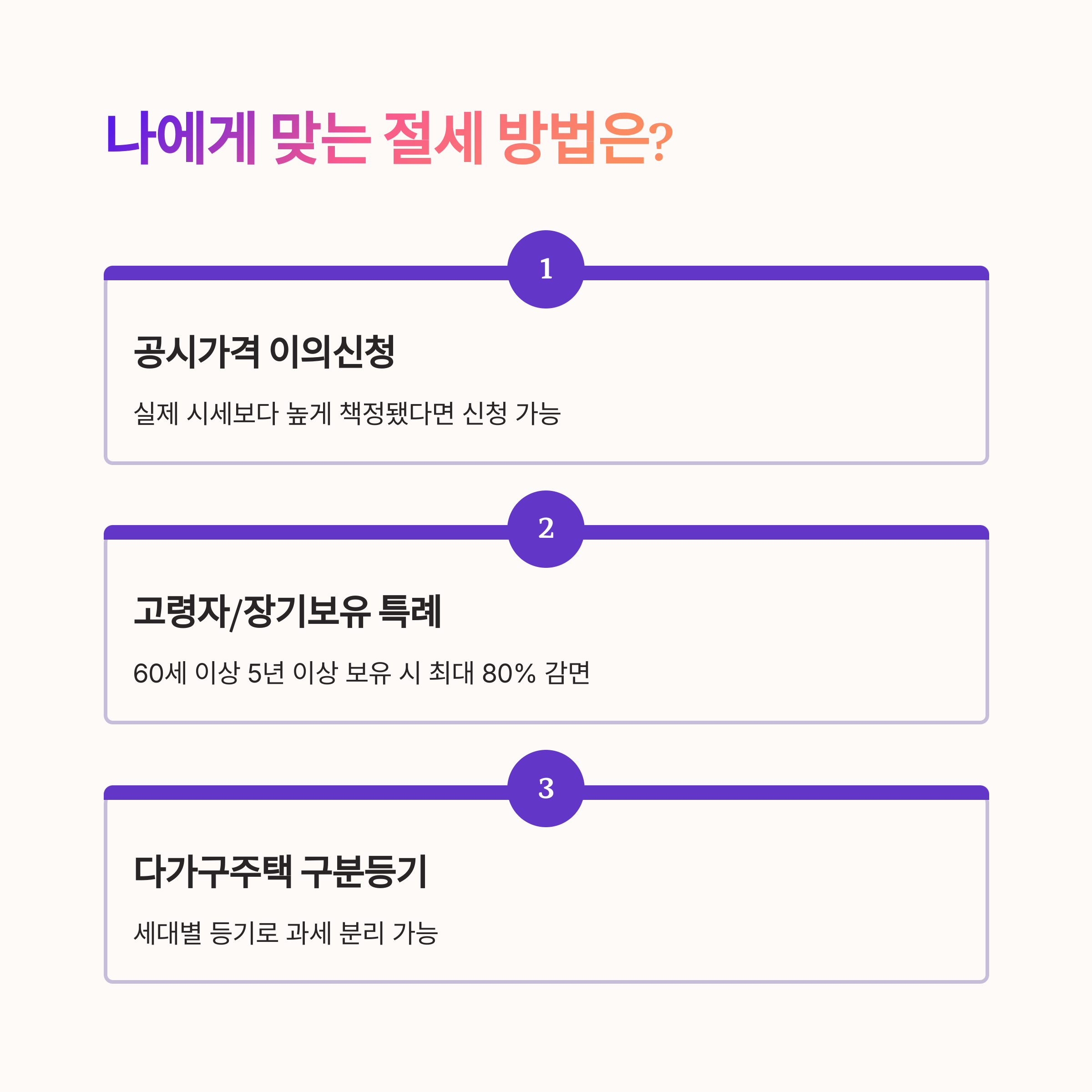 | 구분등기 활용 | 다가구 소유자 | 과세 분리로 부담 감소 | 상시 |