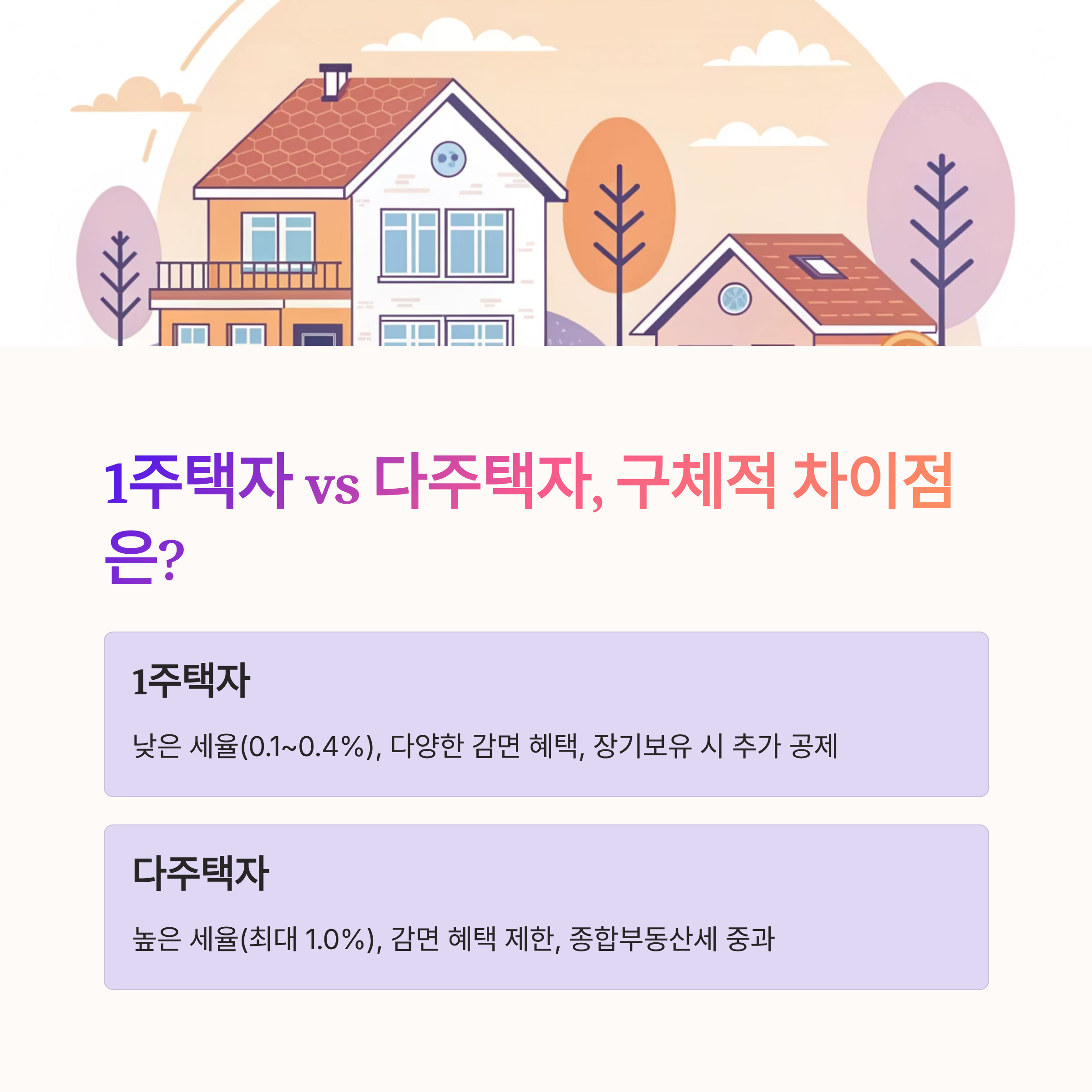 그래서 실거주 목적이라면 1주택자로 남는 것이 세제상 유리해요. 다주택을 계획하고 있다면, 이 세금 차이를 미리 고려해서 전략적으로 접근해야 해요.