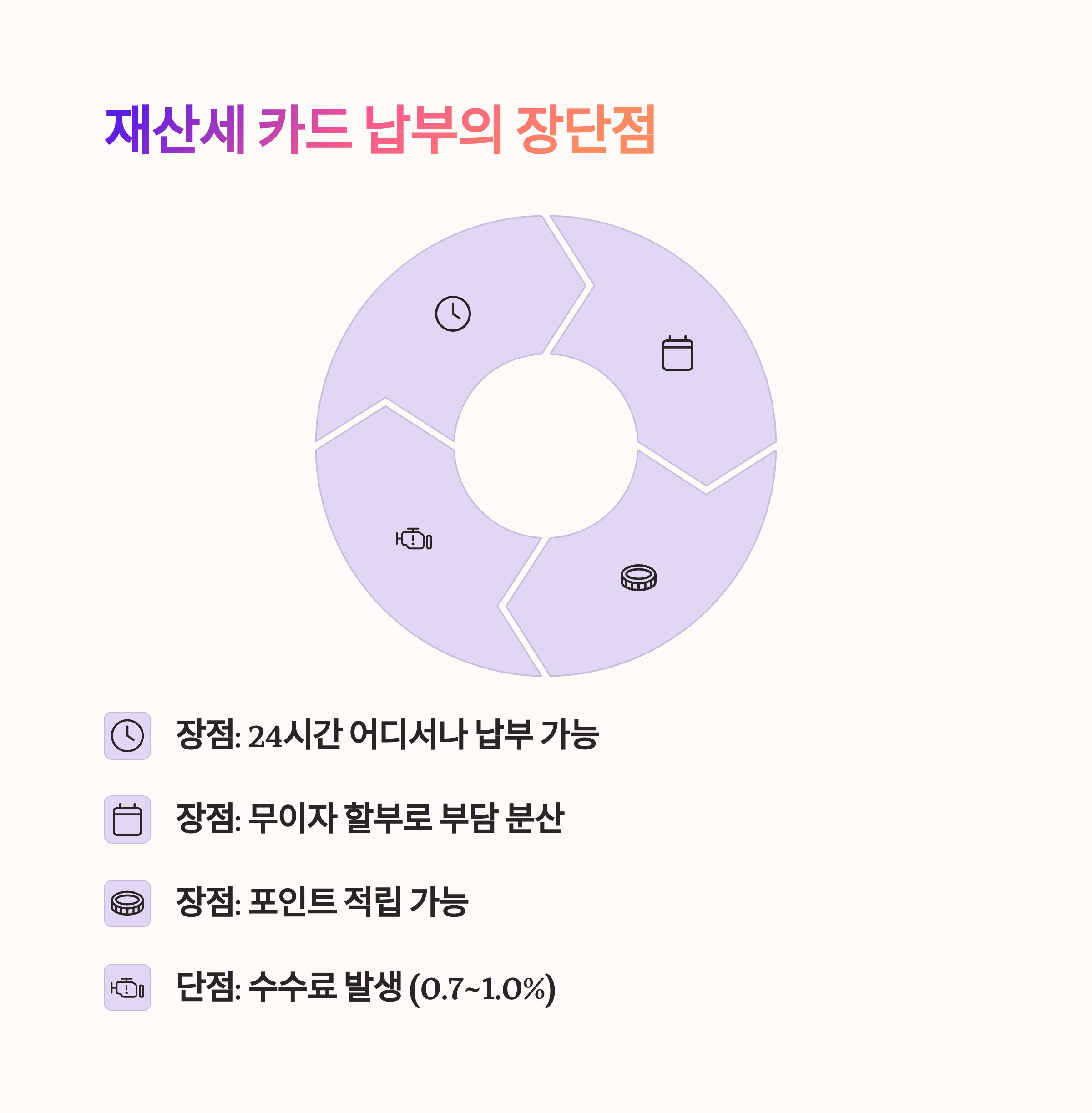 그렇다면 단점은 없을까요? 물론 있어요. 카드로 납부할 경우 ‘수수료’가 발생해요. 일반적으로 0.7%에서 1% 수준인데, 이 수수료는 납세자 부담이에요. 100만 원을 낼 때 수수료가 7천 원에서 1만 원까지 들 수 있으니, 이 점은 단점으로 볼 수 있어요.