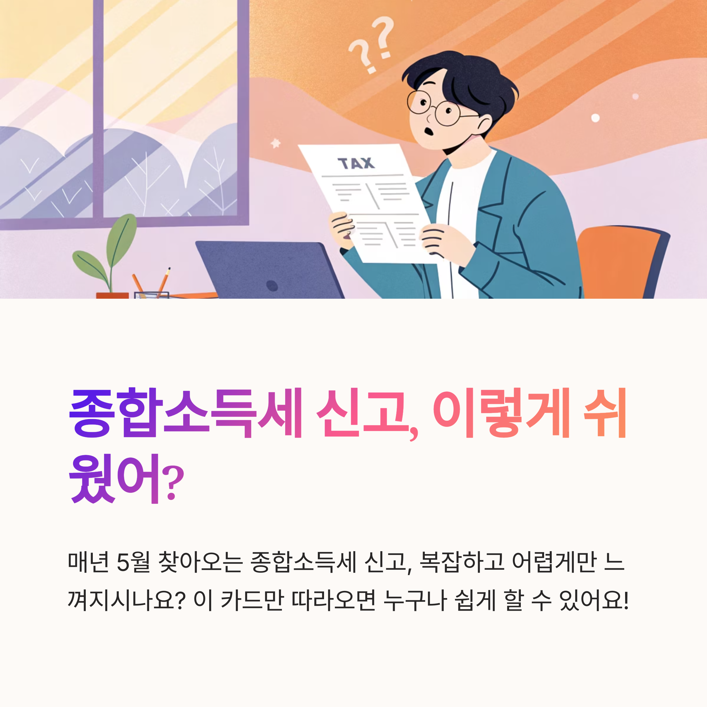 매년 5월이면 찾아오는 중요한 일이 바로 종합소득세 신고예요. 자영업자, 프리랜서, 부동산 임대소득자 등 여러 유형의 사람들이 꼭 챙겨야 하는 절차죠. 하지만 막상 하려니 어렵고 복잡하다고 느껴질 수도 있어요.