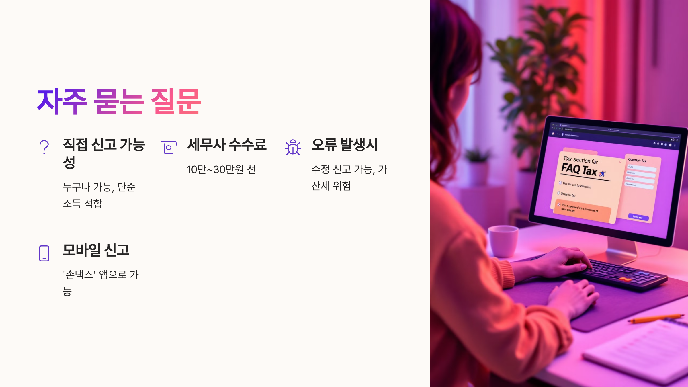 A1. 네, 누구나 할 수 있지만 세법 지식과 서류 준비가 필요해요. 소득 구조가 단순하면 더욱 적합해요.