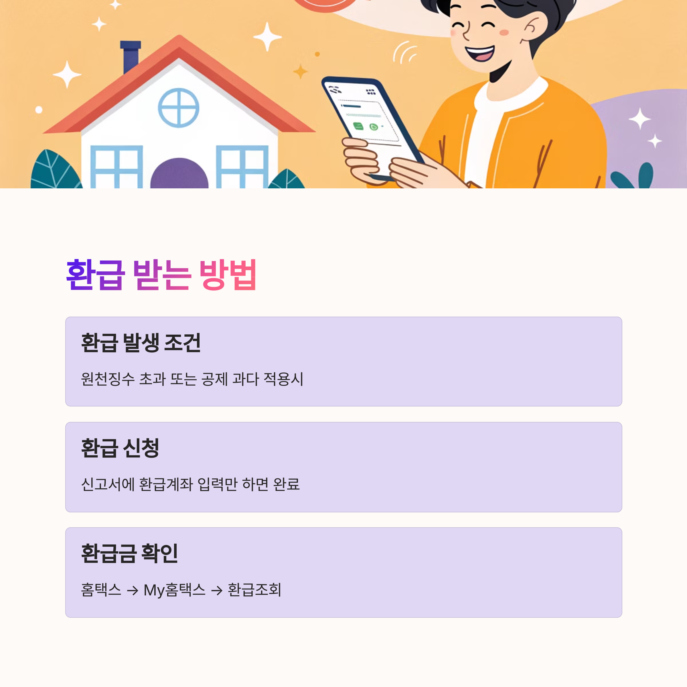 | 환급금 확인 | 홈택스 → My홈택스 → 환급조회 | 보통 1~2개월 소요 |