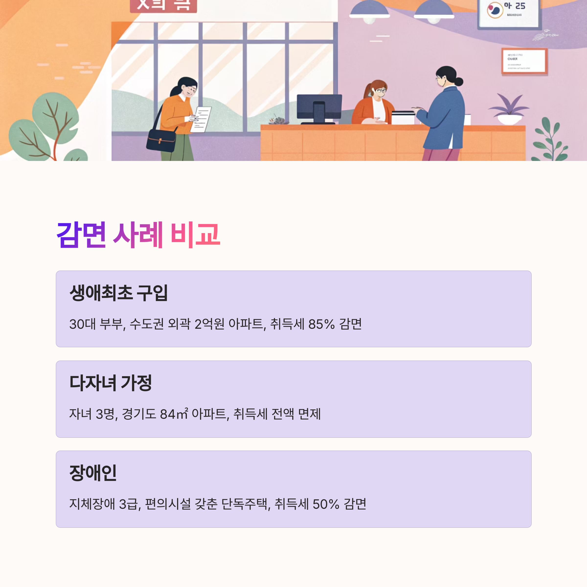 부동산을 살 때 누구나 부담스러운 부분이 바로 ‘취득세’예요. 하지만 일정한 요건을 충족하면 이 세금을 줄이거나 면제받을 수 있답니다. 특히 생애최초 주택 구입자나 다자녀 가구, 장애인, 국가유공자 등은 큰 혜택을 받을 수 있어요.