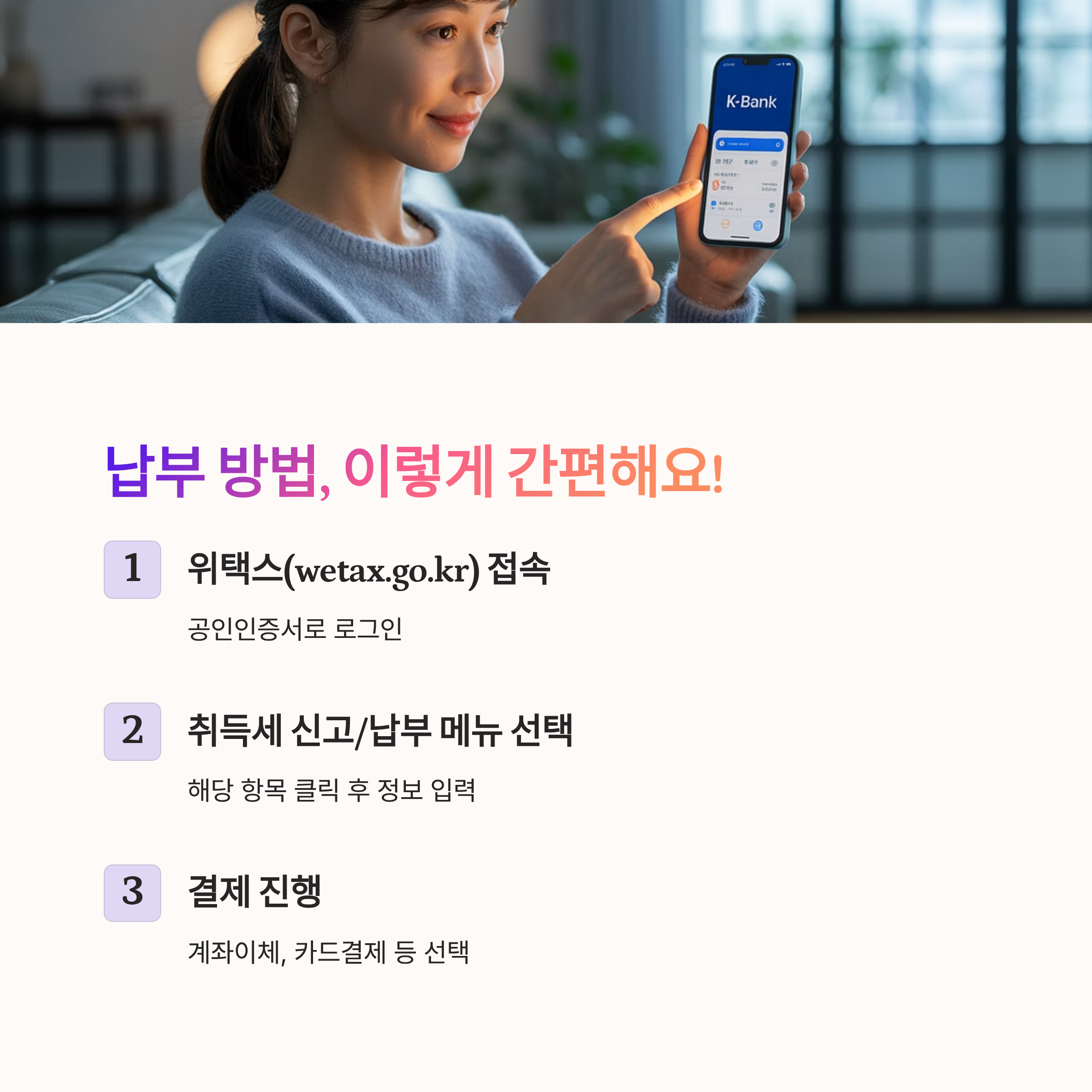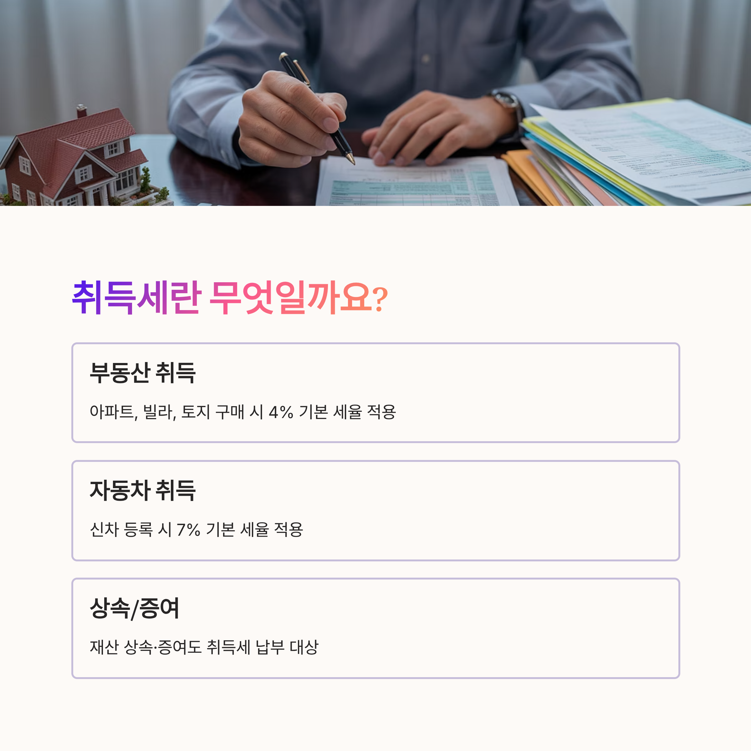 부동산을 구입하거나 차량을 등록할 때 내야 하는 세금 중 가장 중요한 게 바로 ‘취득세’예요. 이름만 들어도 어렵게 느껴질 수 있지만, 실제로는 명확한 기한 안에 납부만 잘하면 복잡할 일은 전혀 없답니다.
