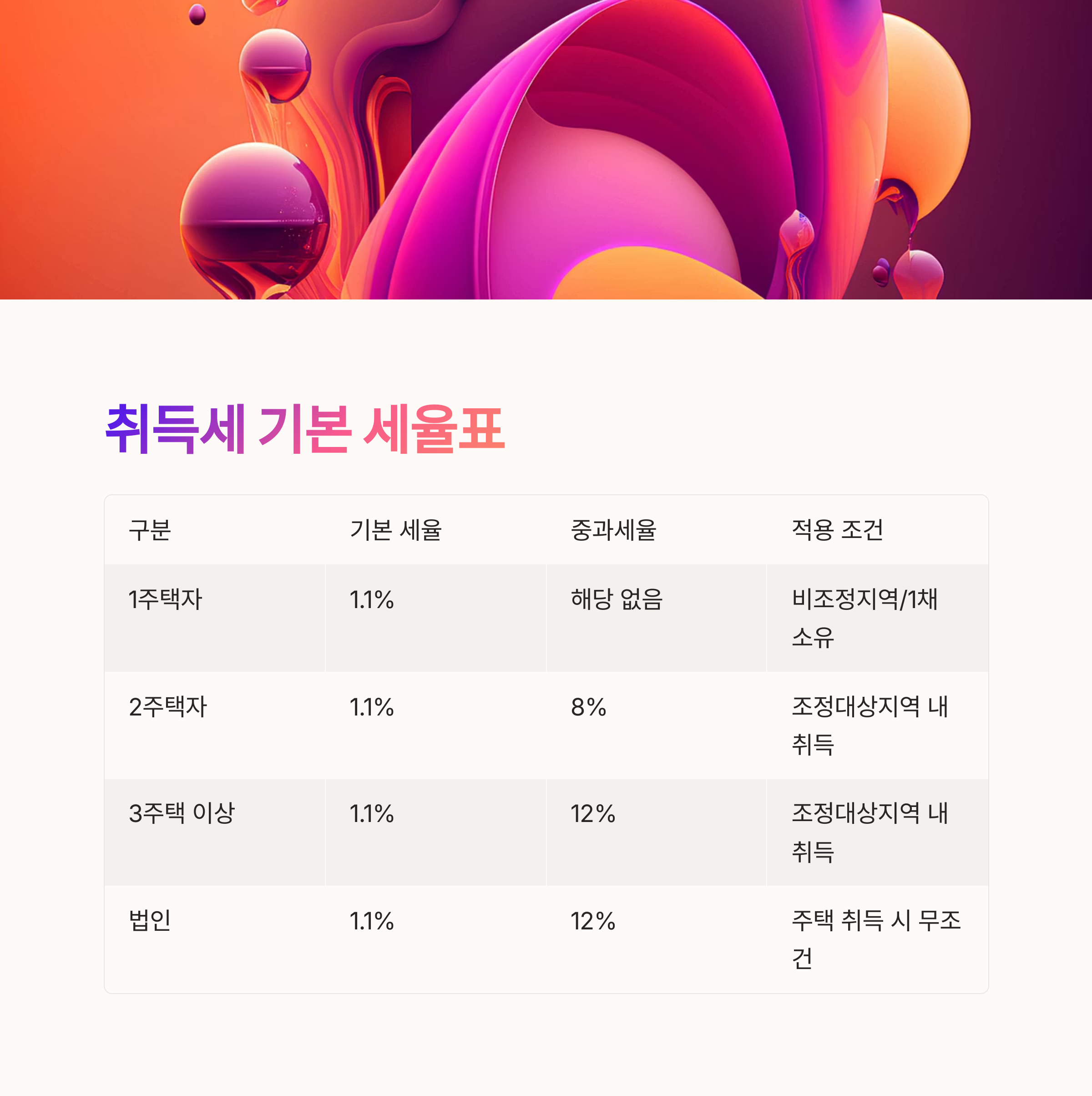 | 2주택자 | 1.1% | 8% | 조정대상지역 내 취득 시 |