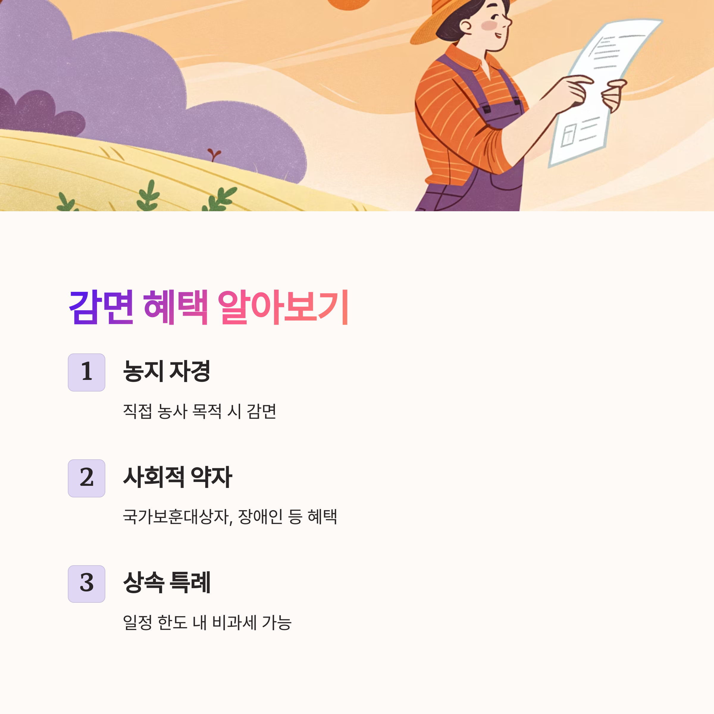 일정 조건을 만족하면 취득세가 감면되거나 아예 면제되기도 해요. 대표적인 경우는 농지 취득 시 자경을 위한 농지라면 감면 혜택을 받을 수 있어요. 또 귀농이나 귀촌 관련 정책에 따라 세제 혜택을 제공하는 지자체도 있죠.