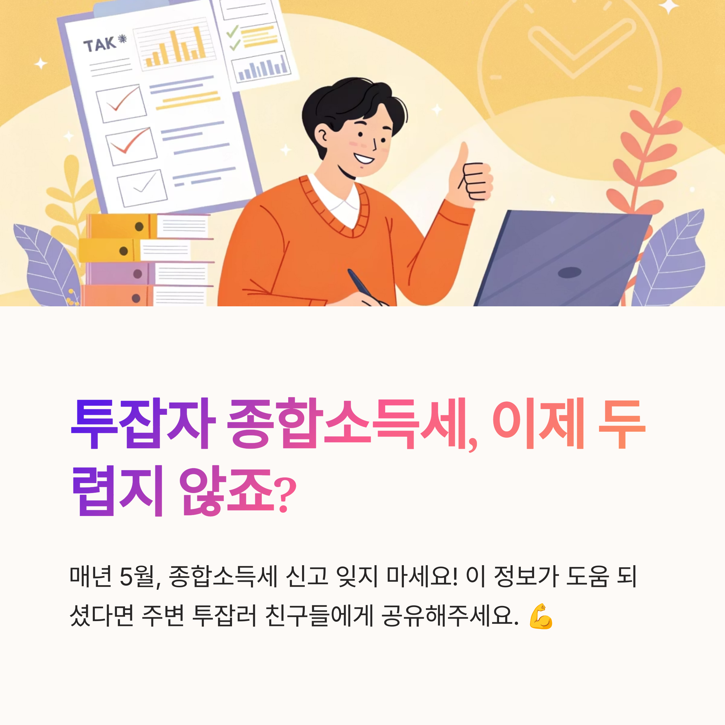 너무 어렵게만 느껴지는 세금 이야기도, 실제 사례와 함께 이해하면 쉬워지니까 끝까지 함께 읽어보면 분명 도움 될 거예요! 저는 이 글을 준비하면서 이런 정보는 진짜 모든 투잡자들에게 꼭 알려주고 싶다는 생각이 들었답니다. 🙋♀️