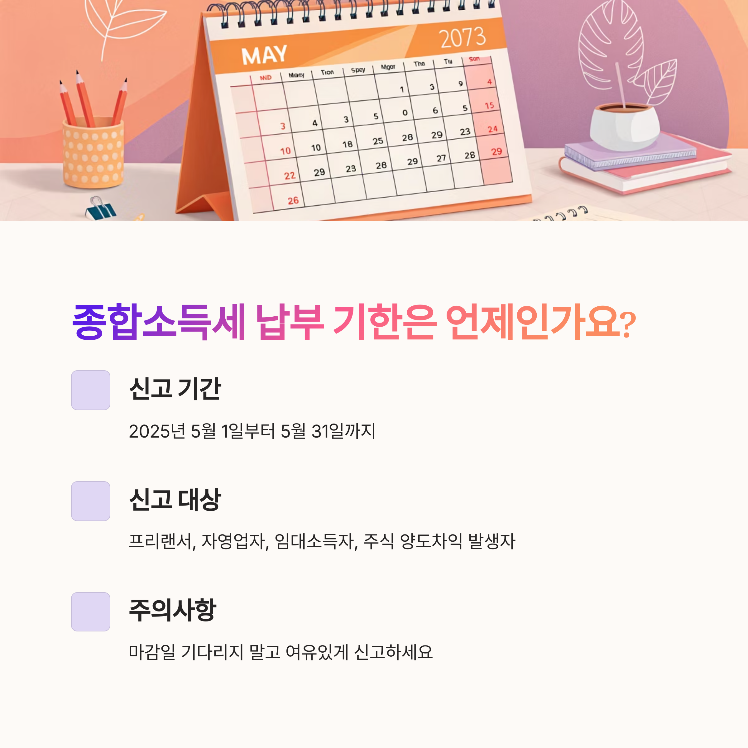 📆 종합소득세 납부 기한은 언제까지인가요?