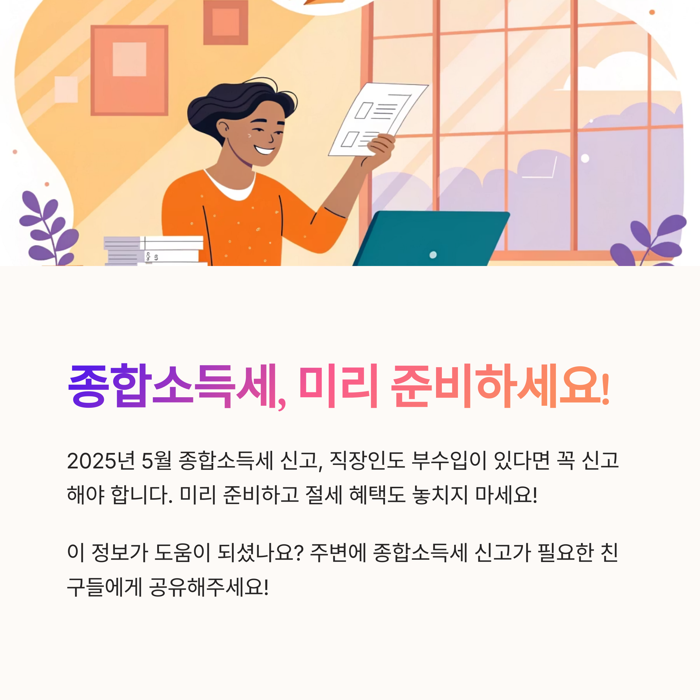 2025년 5월은 종합소득세 신고의 달이에요! 직장인이라도 예외는 아니랍니다. 단순히 회사에서 연말정산을 마쳤다고 끝나는 게 아니에요. 부수입이나 프리랜서 수익, 혹은 임대소득이 있다면 반드시 종합소득세를 신고해야 해요.