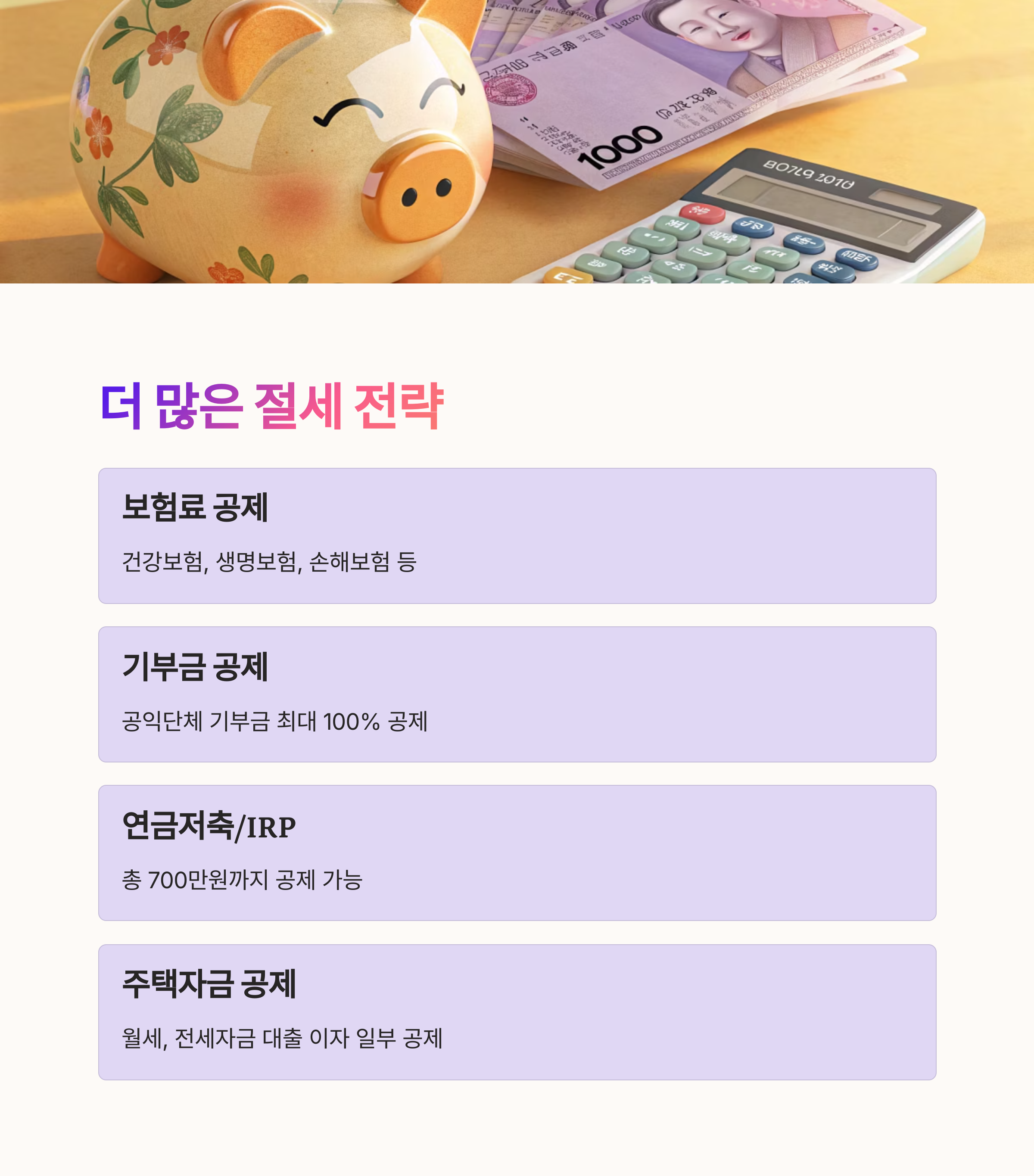 6. 연금저축/IRP 공제: 총 700만원까지 공제 가능, 절세의 대표 상품