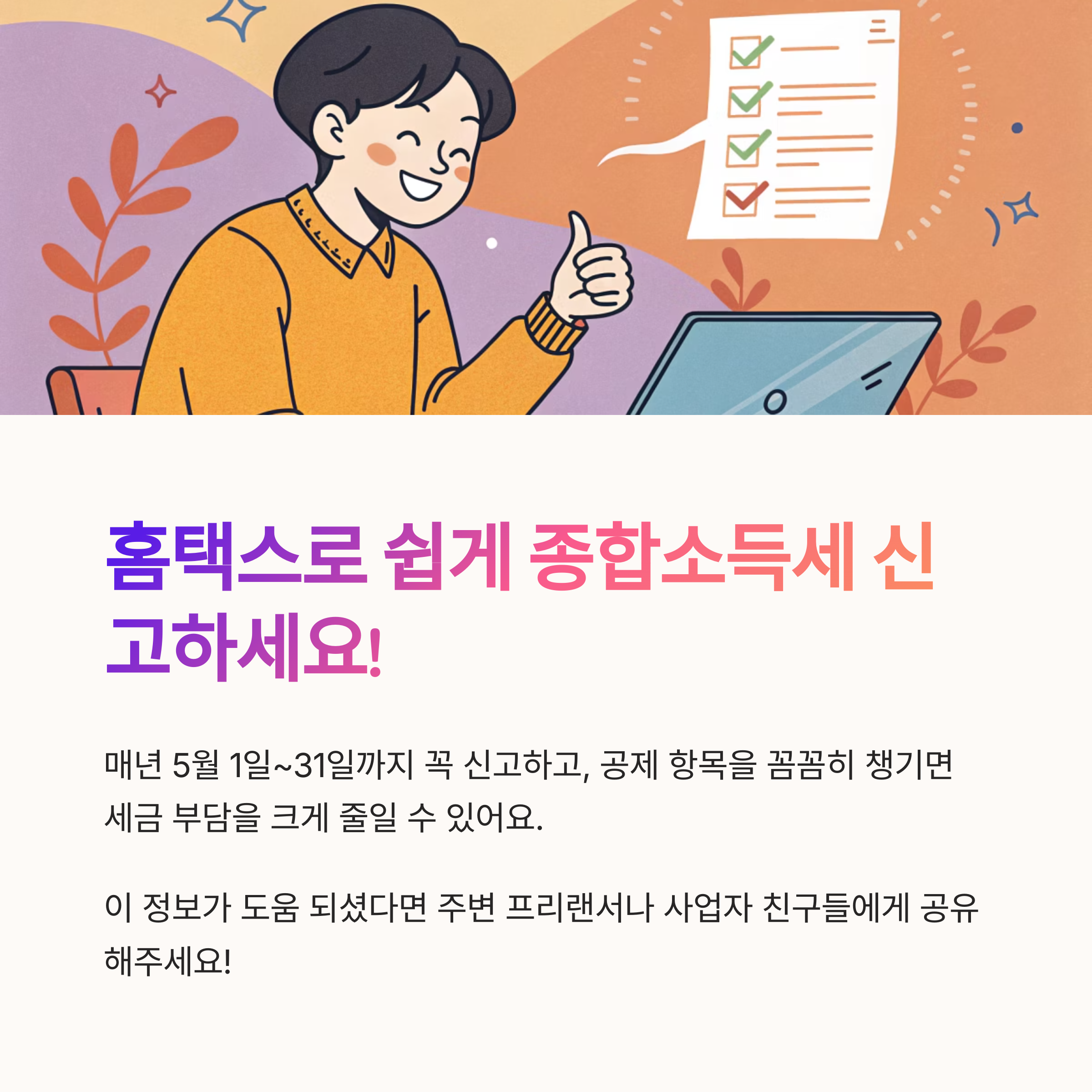 이번 글에서는 종합소득세의 기본 개념부터 홈택스를 활용한 구체적인 신고 방법까지 친절하고 자세하게 설명해드릴게요. 누구나 따라 할 수 있도록 실제 화면과 절차를 중심으로 차근차근 알려드릴게요.
