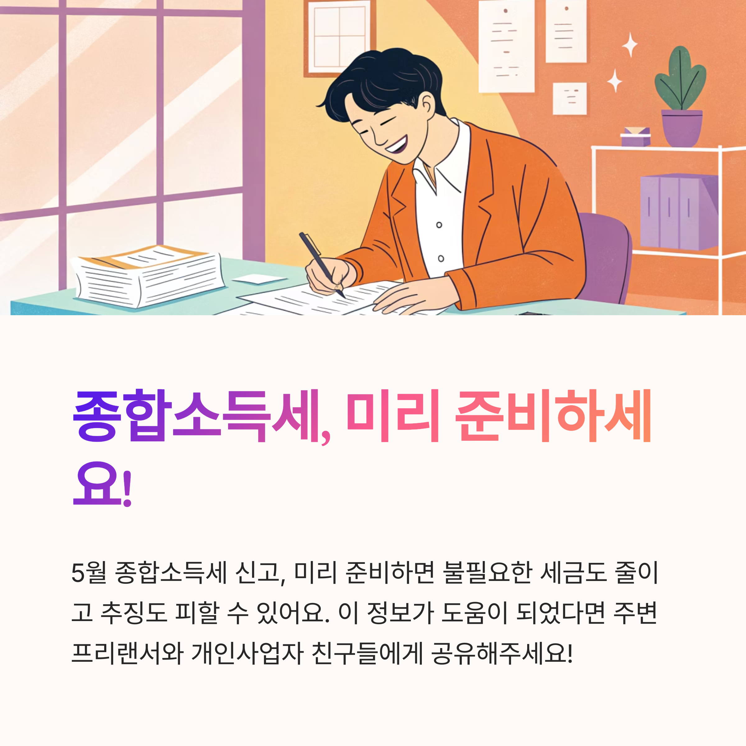 5월 종합소득세 신고를 앞두고, 개인사업자와 프리랜서라면 아래 체크리스트를 따라 준비하면 훨씬 수월해져요!